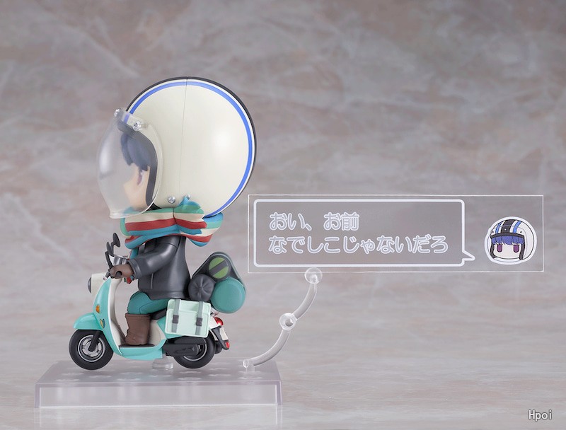 出自超人氣TV動畫《搖曳露營△》,「志摩凜」與夥伴機車合為套組登場!表情零件有「普通臉」、幸福的「吃飯臉」、笑容滿溢的「滿足臉」。圍巾可自由穿脫,並附有戴著安全帽的頭部零件。配件附有「機車」、「機車用坐姿下半身」、「露營道具&側掛包」、「手機」,還有「三明治烘烤機」、「多汁肉包」、「叉子」等,內容豐富!機車可裝上「\好累/」台詞片,重現劇中場景。只要利用不同角度的兩種透明支架,也能擺飾正在騎機車的姿態。此外,另附有「SNS對話框片」,仿造劇中令人印象深刻的SNS對話畫面。將騎機車享受露營的志摩凜帶回家賞玩吧!