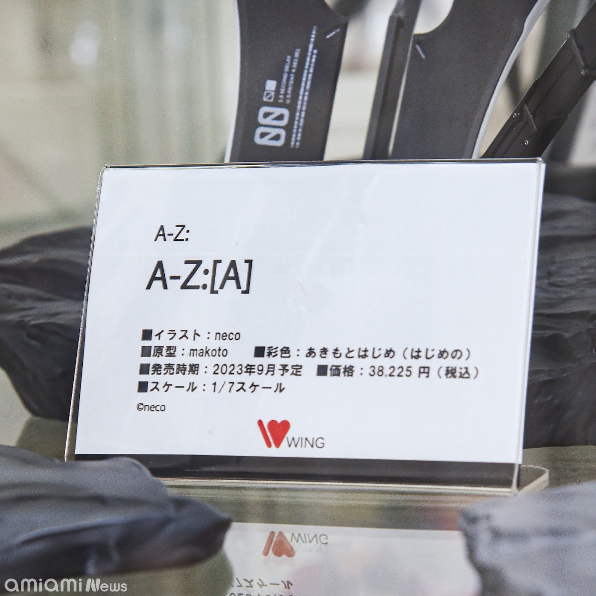 出自繪師neco繪製的原創插畫《A-Z:》系列,「A-Z:[A]」化身為1/7比例模型。忠實重現插畫模樣,精巧製作超大武器,以及隨風飄揚的頭髮與衣服等細節。武器施加槍鐵金屬色塗裝表現厚重感,尺寸也呈現出不像1/7比例模型的魄力,任何角度都擁有動作且充滿看點。將她帶回家鑑賞吧!