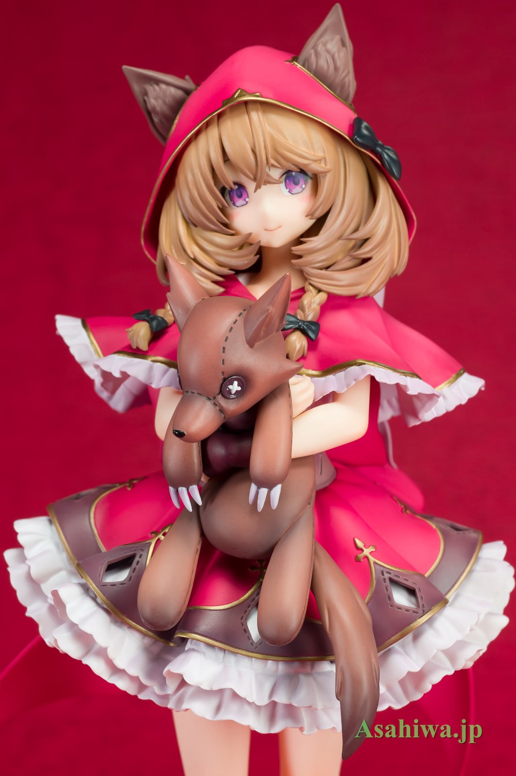 美少女杂志《E☆2》Vol.53之中刊载的しゅがお老师的插画「狼帽子酱」的1/7标准比例手办登场。匠心独具的原型与涂装完美表现出了插画中的魅力。插画中背后看不到的部分和靴子等也基于しゅがお的插画进行了立体化制作。快将可爱的狼帽子酱带回家吧!