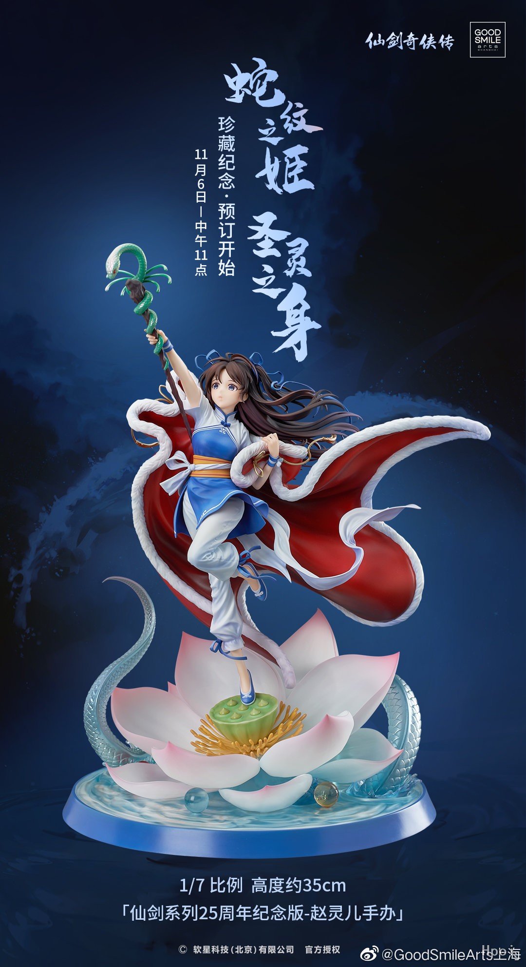 本商品是以高人气画师Rella老师新绘的25周年纪念版全身插画为原型,将赵灵儿为了拯救众生而和水魔兽决战时咏唱的模样进行了还原。