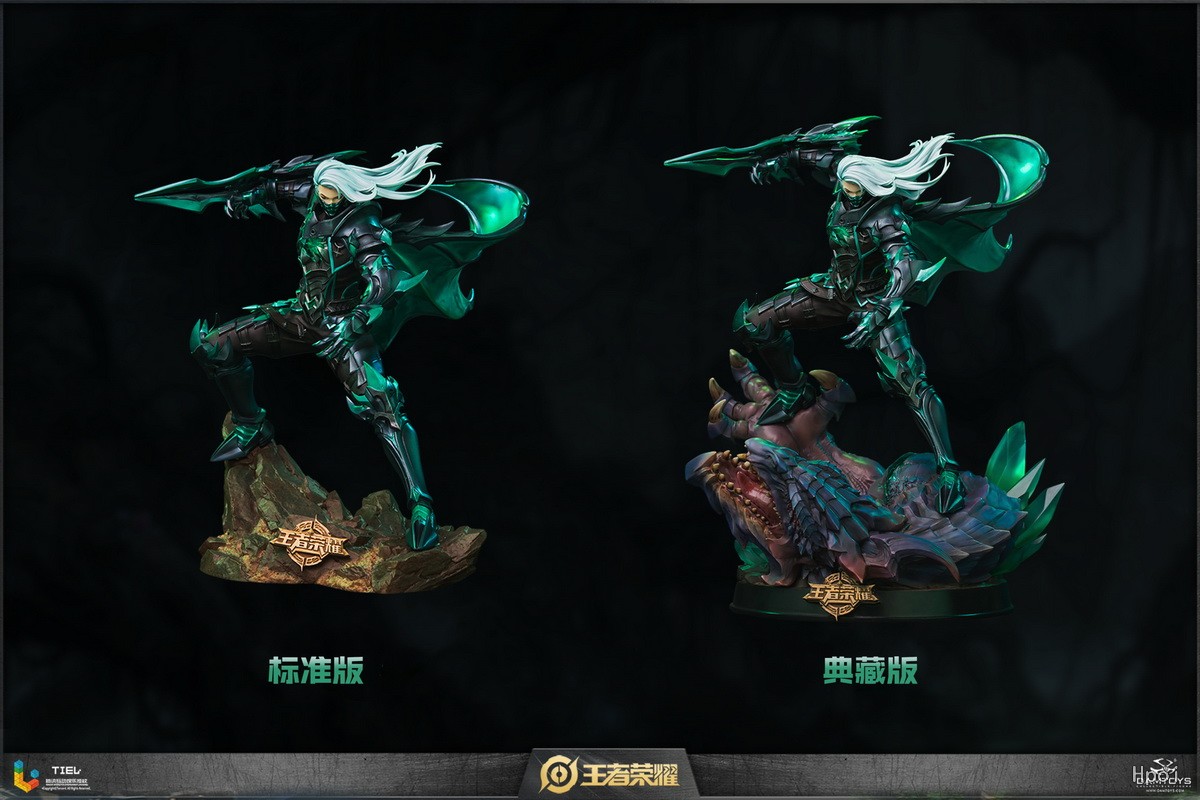 雕像选取了游戏中玩家呼声强烈的暗隐猎兽者皮肤进行设计制作。