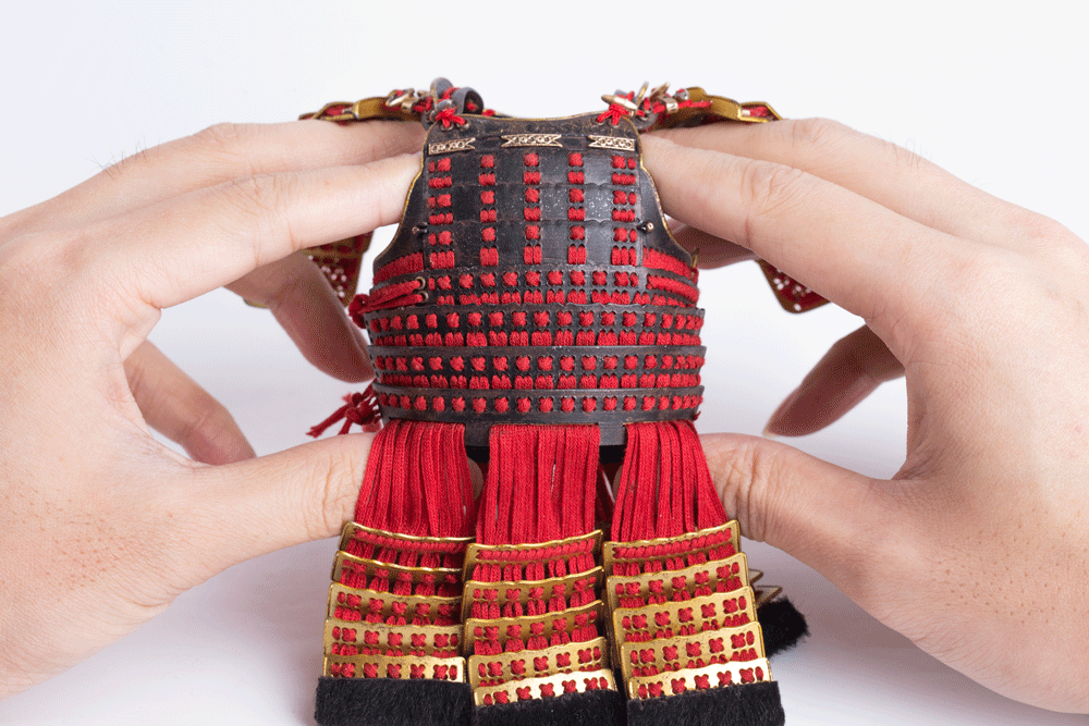 中文名称:EX029 石田三成 红糸素悬威伊予札二枚胴具足套装