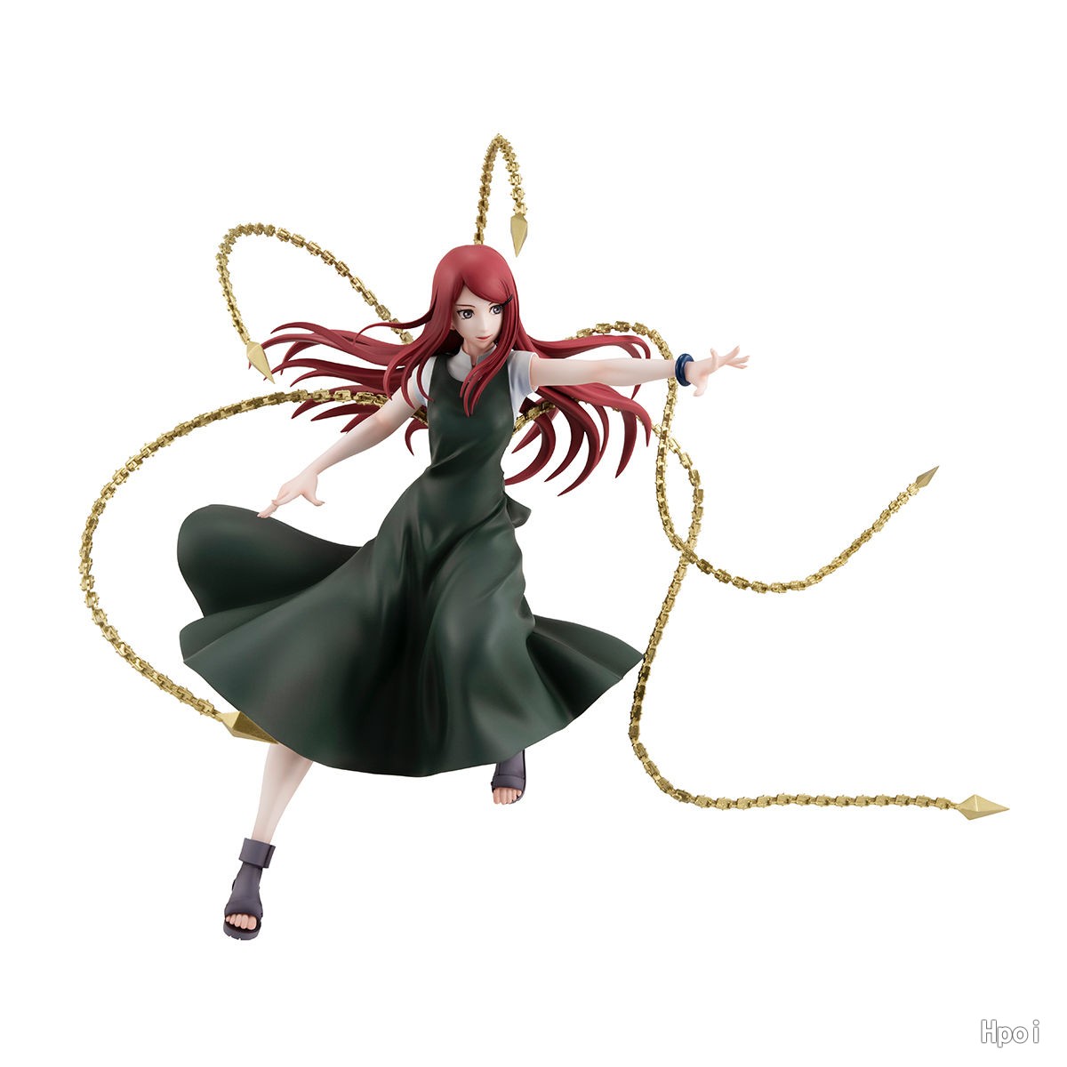 本商品作为鸣人的母亲而为人所熟悉的玖辛奈那独特的红色长发随风飘舞的同时发动忍术的动作进行立体化。