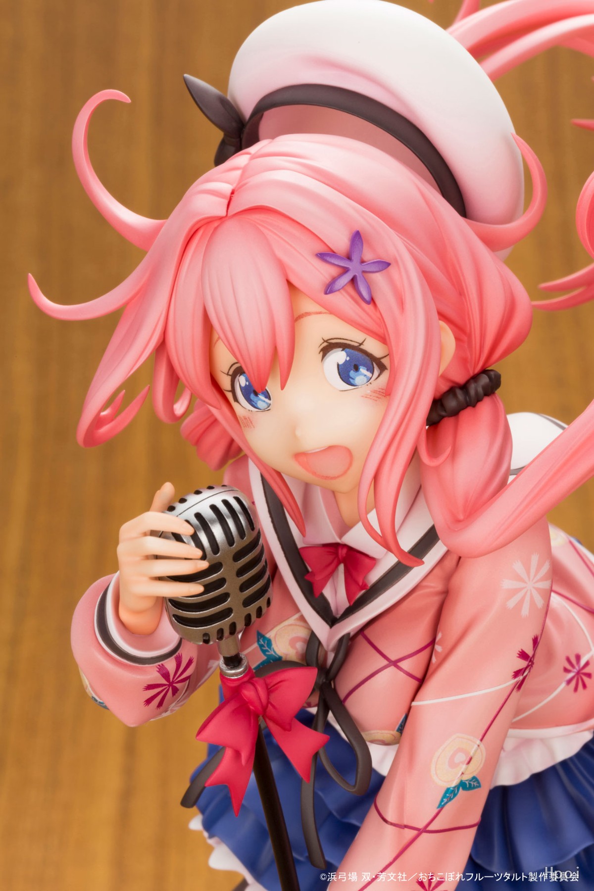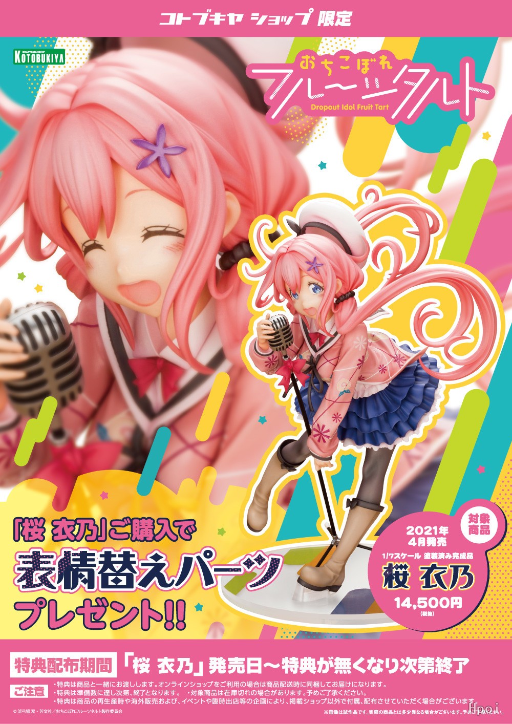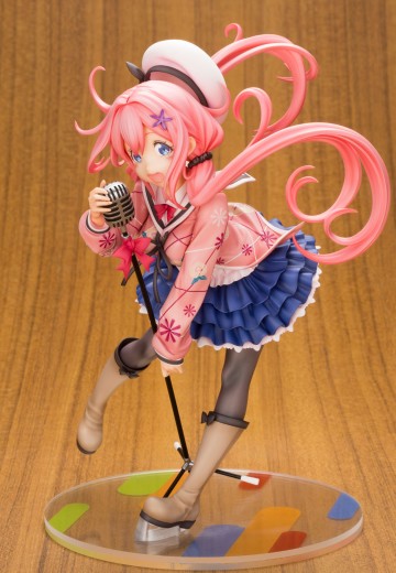 来自TV动画《满溢的水果塔》中为了成为偶身而只身一人前往东京的「樱衣乃」以充满动感的动作进行立体化!显得充满动感的发辫,飘逸的裙子都细致地进行造型。连好她夹克上的独特图案都完全还原出来。使用了「水果塔」成员的印象色底座显得时尚。请务必将这位为了拯救老鼠庄的危机而天天奋斗的新人偶像樱衣乃迎到手边欣赏!