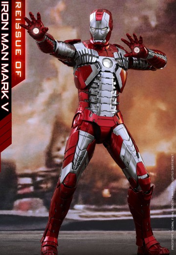 Hot Toys 为迎接新年打响头炮,强势重启《钢铁侠2》钢铁侠Mark 5 1:6比例合金珍藏人偶,为钢铁侠粉丝们打造心目中的挚爱经典收藏! 《钢铁侠2》钢铁侠Mark 5采用合金素材制作,既能让装甲素体外观呈现出满满的金属感,其可动关节能更具力量感,重现各种在电影画面所看到的高难度肢体动作。整套装甲线条结合上精确准绳的身型比例,人偶精心打造出高约32.5cm丶备有逾30个可动关节,当中双臂丶腰部和双腿关节配有相应的技术以提升可动幅度,更高度还原钢铁侠Mark 5的可动性。此外,多组背部的扰流定风翼与小腿装甲配有开启功能,模仿托尼于赛车场内受到丧鞭袭击时,在小辣椒与保镳哈皮•霍根的帮助下,及有“Suit Up” Mark 5装甲时的状态,呈现电影中最精彩一幕。此外,为增强人偶的整体玩味,更配备了逼真战损效果的胸甲丶左面肩甲和左手手臂,予玩家将钢铁侠Mark 5自由组装成标准或战损型态。头雕方面,除备有双眼绽放
