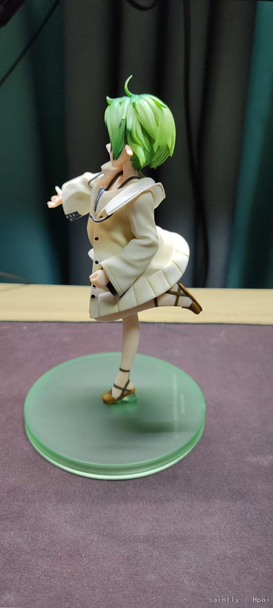 服装连材质的质感以及随左动作而出现皱折都细致地进行表现。穿在卫衣下的衬衫,能从肩部窥眼得到的内衣等,叠穿的服装都有仔细地打造出来,将远超本商品大小的情报量凝聚于本手办中。