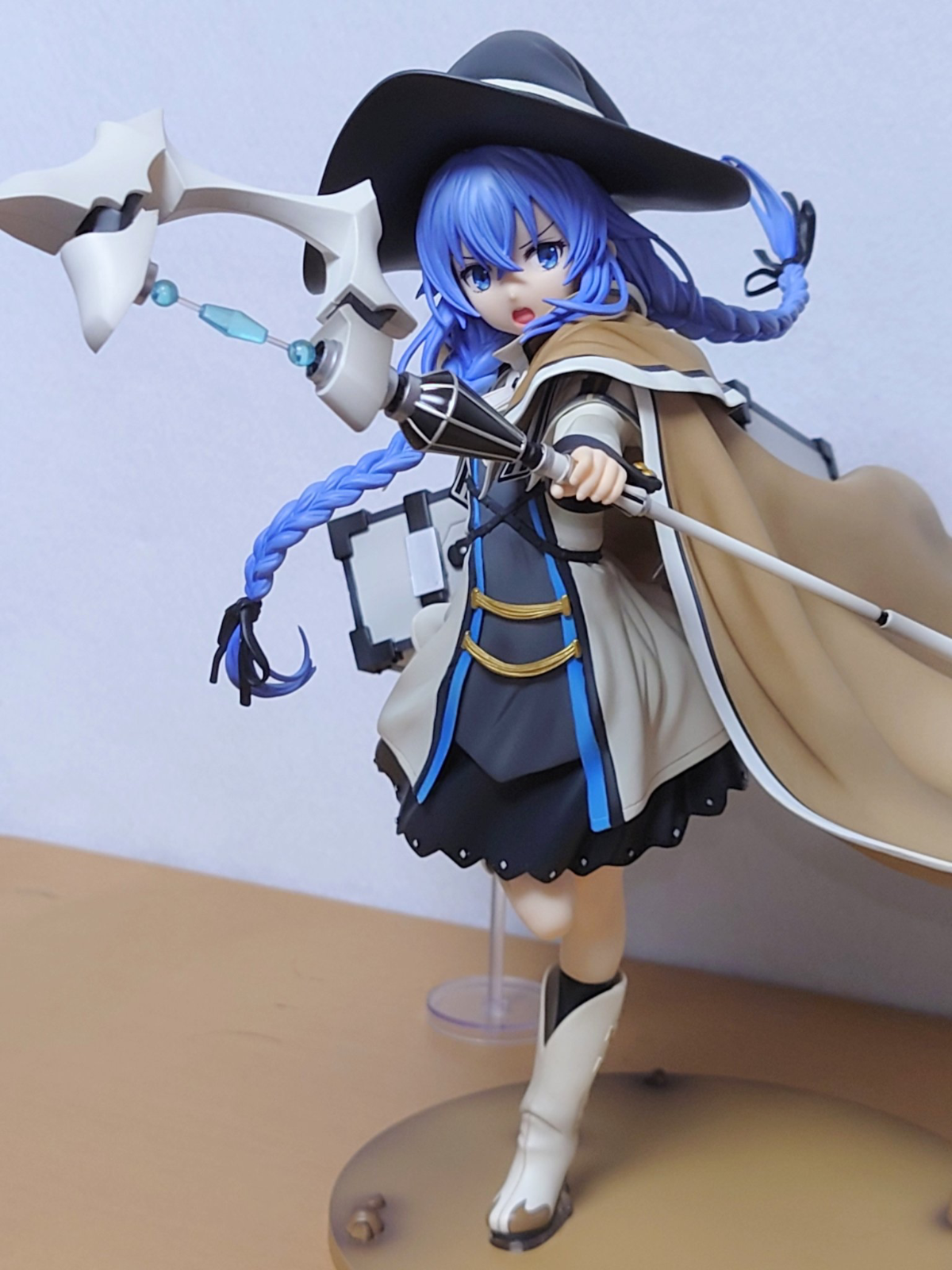 出自第二季於日本播放中的電視動畫《無職轉生~到了異世界就拿出真本事~》,主角魯迪烏斯的家庭教師,還被當作神崇拜的「洛琪希‧米格路迪亞」化身為1/7比例模型登場!以旅途中戰鬥為構想,將躍動感及勇敢的姿態製成模型!披風與帽子可自由拆裝,擺飾成輕裝版的造型。快來以喜好的姿態賞玩吧!