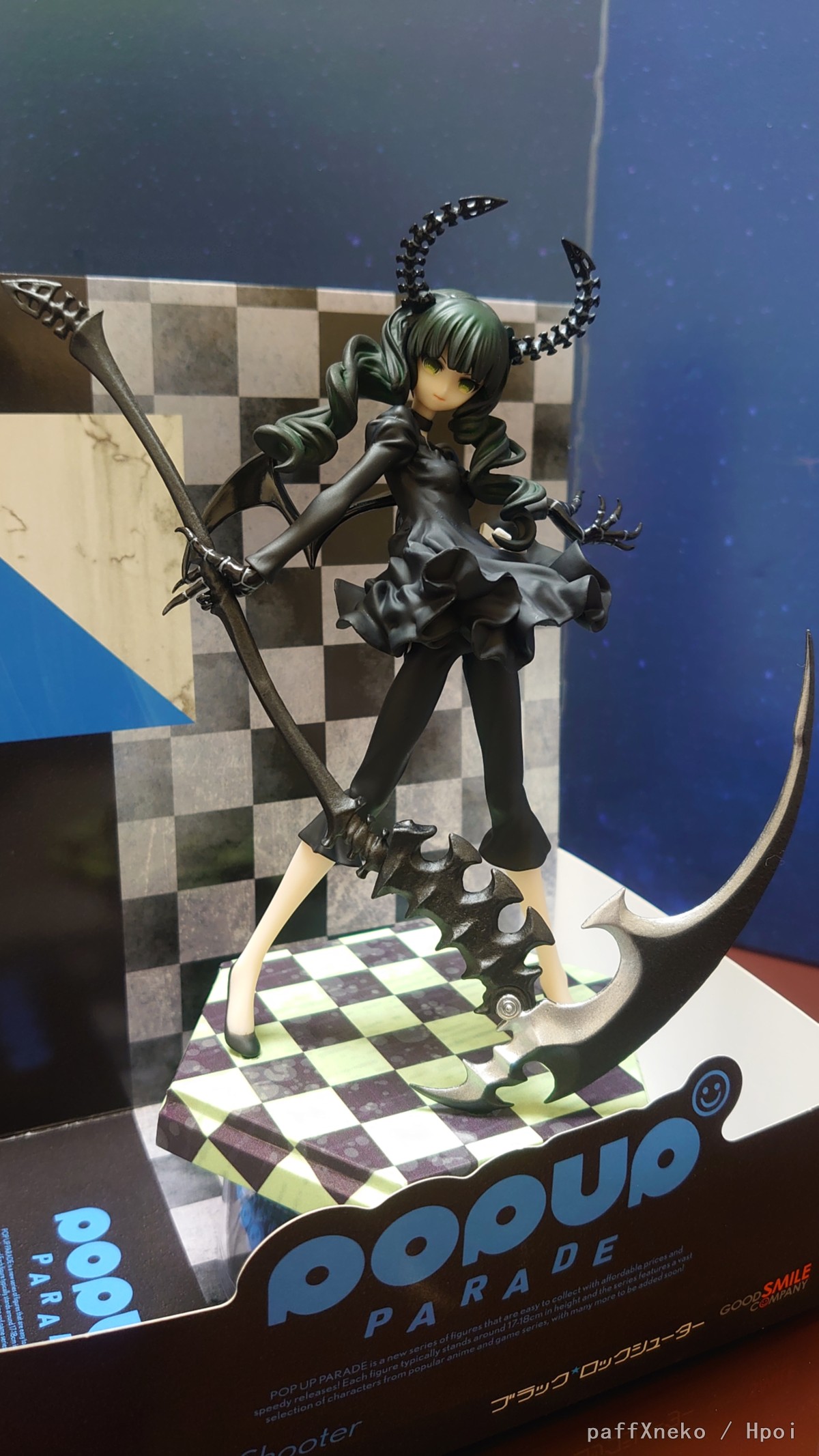 「POP UP PARADE」是全新的模型系列商品,讓人不禁手滑訂購的親民價格、方便擺飾的全高17~18cm尺寸、短期內發售等,擁有令模型粉絲開心的各項優點。為了紀念POP UP PARADE推出第100隻模型,huke的原創角色《BLACK★ROCK SHOOTER》模型第一彈的「BLACK★ROCK SHOOTER」比例模型,經過掃描技術及尺寸調整化身為POP UP PARADE模型登場!濃縮了當時的感動心情。