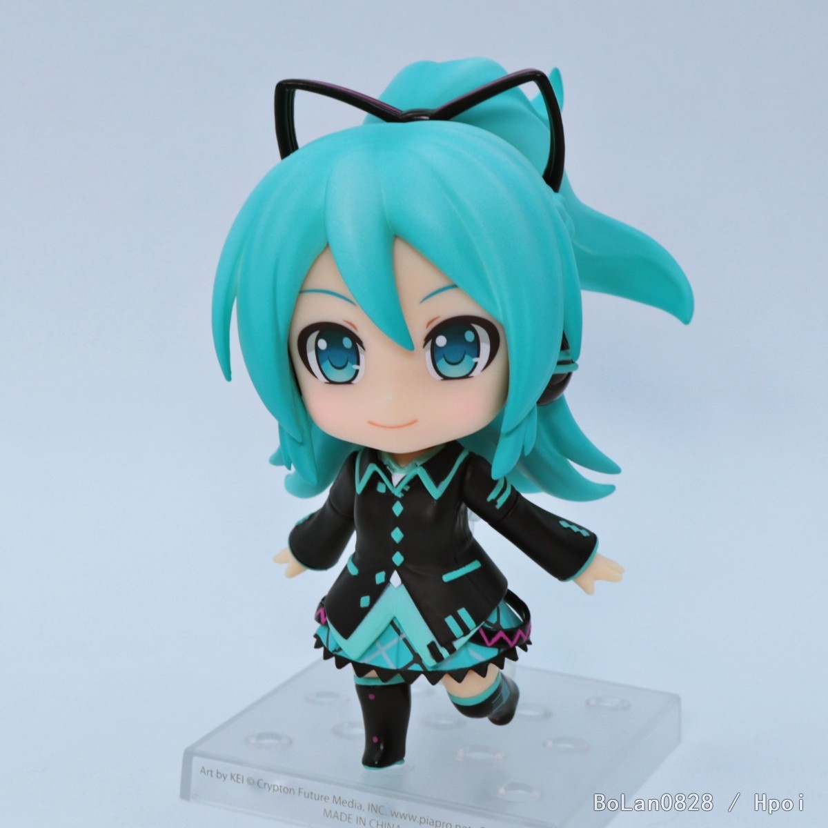 出自《Character Vocal系列01 初音未來》,「初音未來」以繪師KEI為藝術展「初音未來·編年史」特別繪製的視覺圖化身為黏土人!也是初音未來誕生時的初期案,以「如果在決定初音未來的視覺圖時,採用了不是雙馬尾的視覺圖案的話?」為主題,綁馬尾造型的未來化身為黏土人登場。替換用表情零件有「普通臉」、認真的「唱歌臉」,以及鼓起臉頰很可愛的「生氣臉」。搭配「麥克風」,還有可讓人聯想到如果發售的話?的「外盒」,賞玩各種動作。快來把黏土人 初音未來的if(如果)的世界帶回家吧!