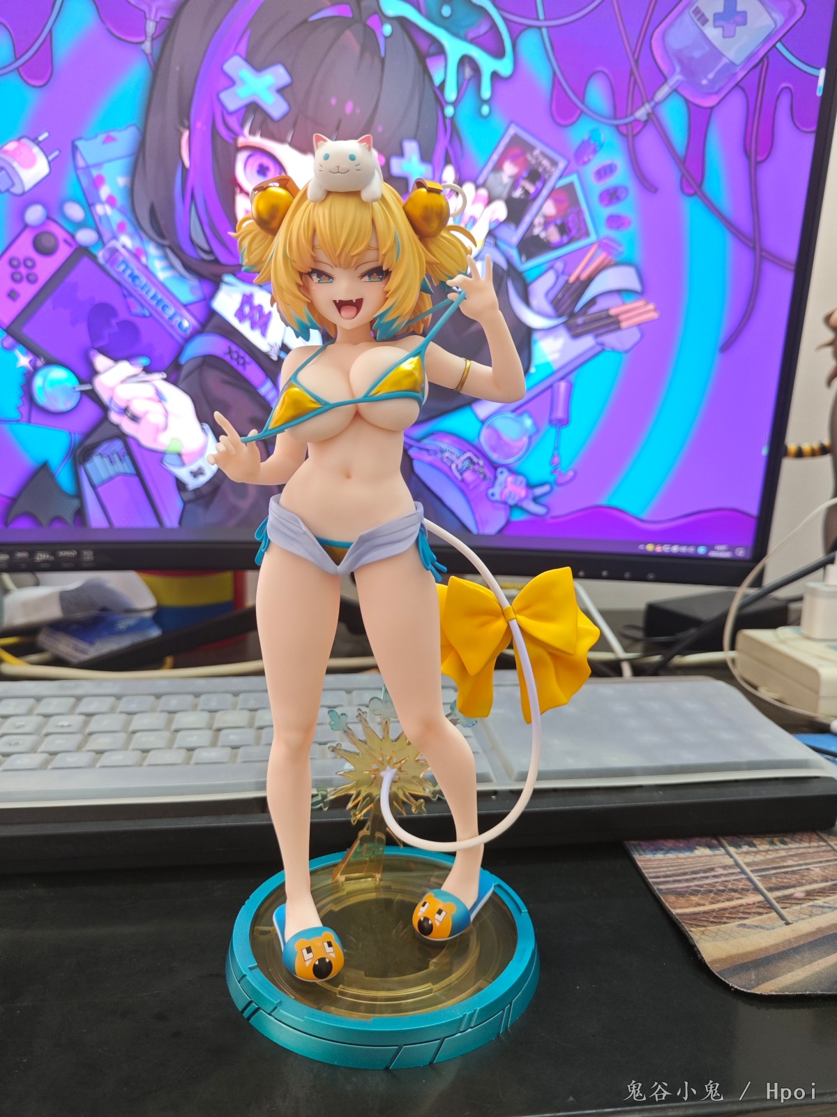 出自电玩游戏《轰炸少女》中,IQ100亿的天才偶像「派茵」化身为1/6比例模型登场。穿着天才比基尼,自豪地笑着让你知道天才的厉害♪替换身体还能展现出更天才的挑衅姿势!热裤可自由穿脱,然后也可以把白猫零件放在头上,在家里也可以体验轰炸少女替换服装功能的乐趣。