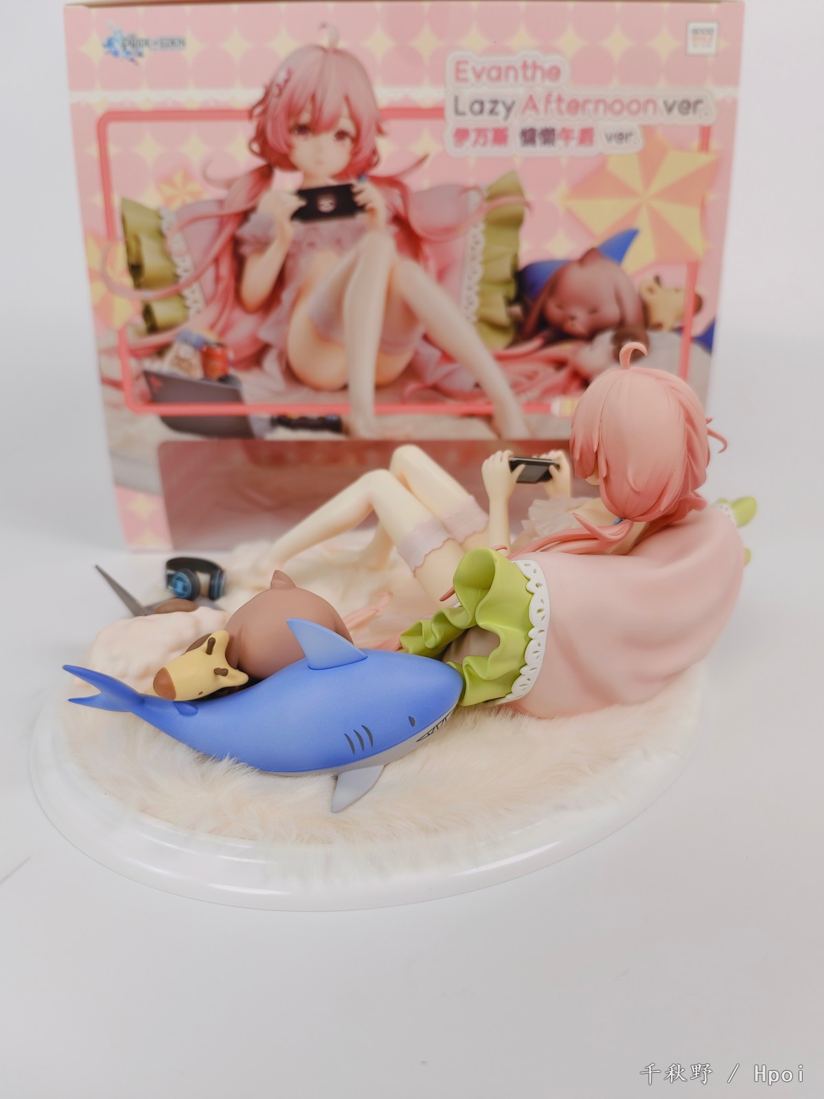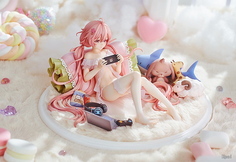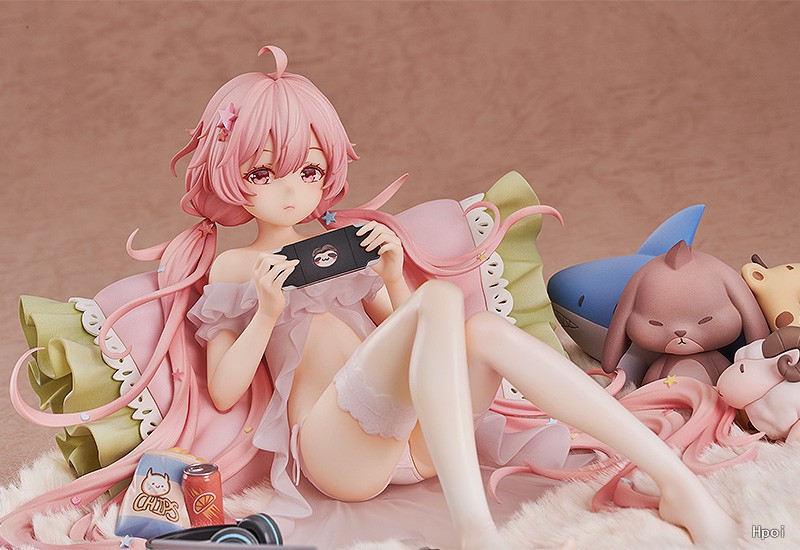 我们将她靠在家中又大又柔软的靠枕上,吃着零件,喝着饮料,听着音乐玩游戏这女神享受假日时的模样还原出来。