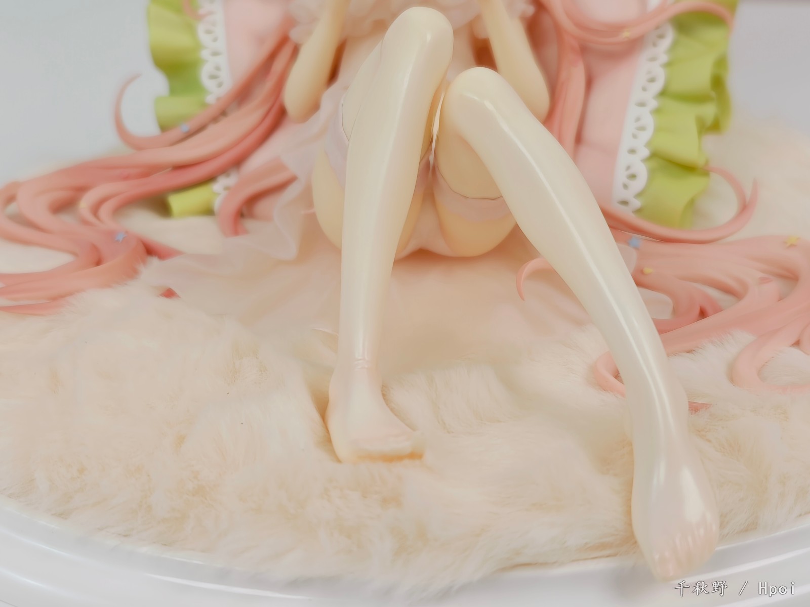 白色的过膝丝通过上色表现出通透的效果,让人感够窥见她可爱而纤细的脚趾。