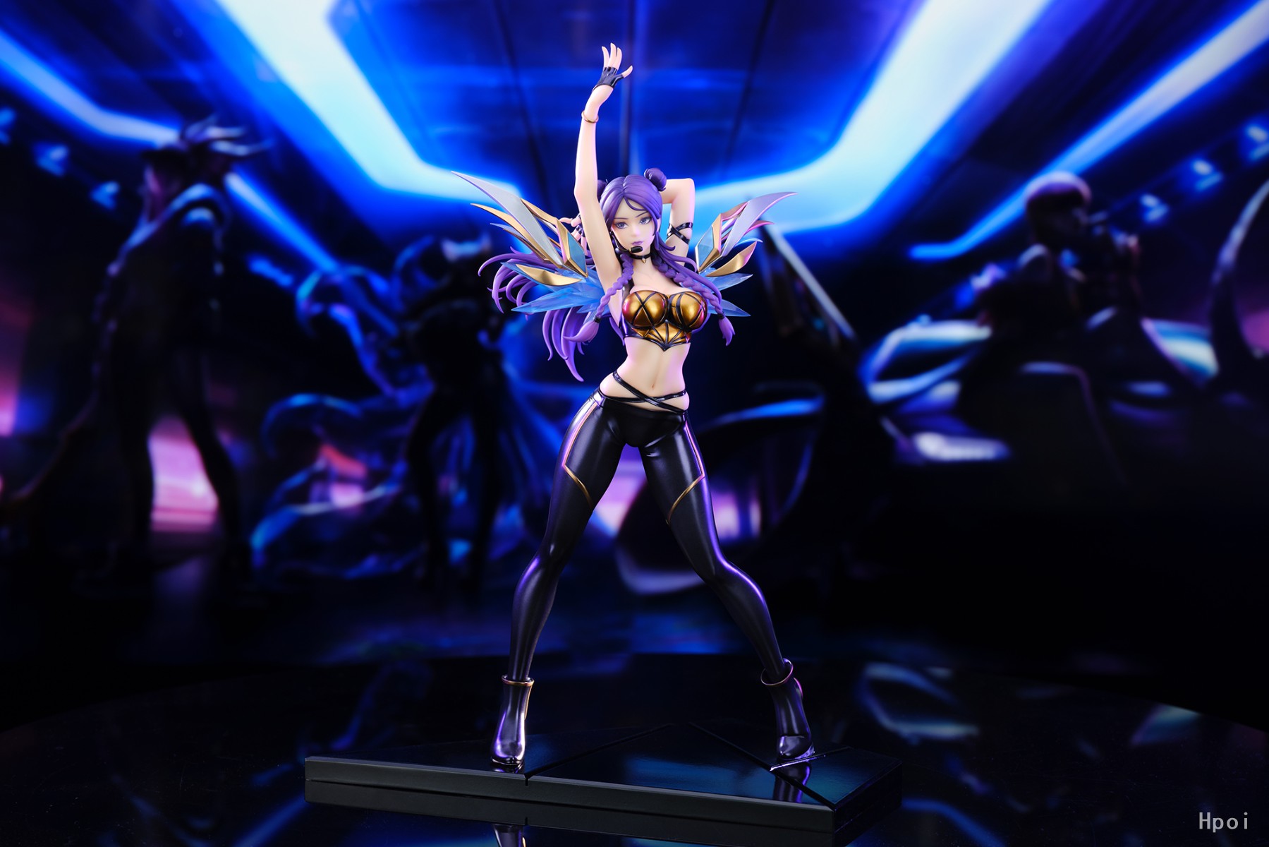 「K/DA 卡莎」的地台可与系列产品进行组合摆放。