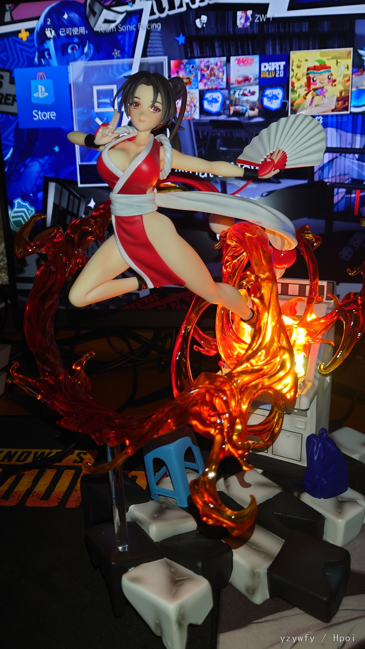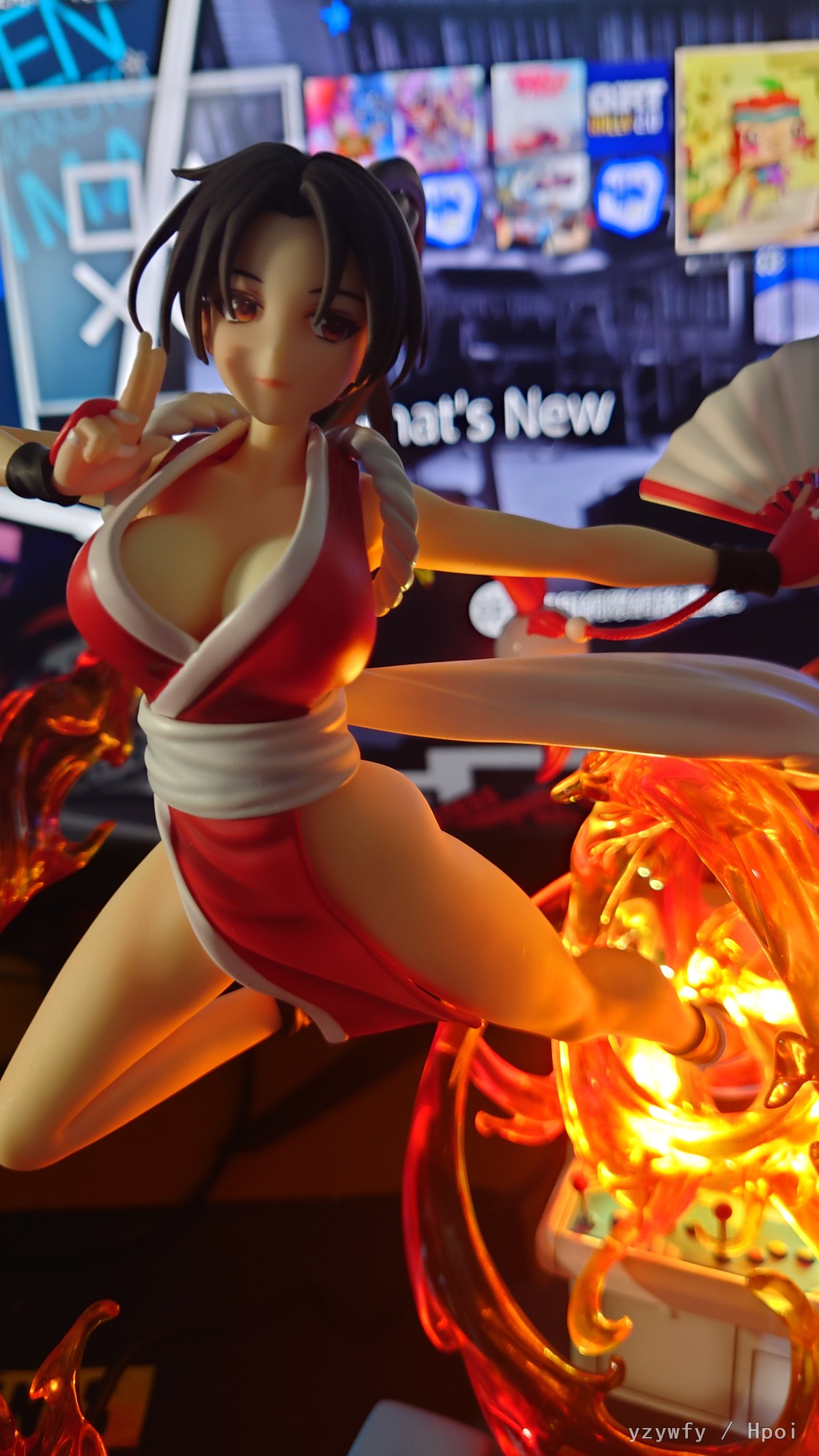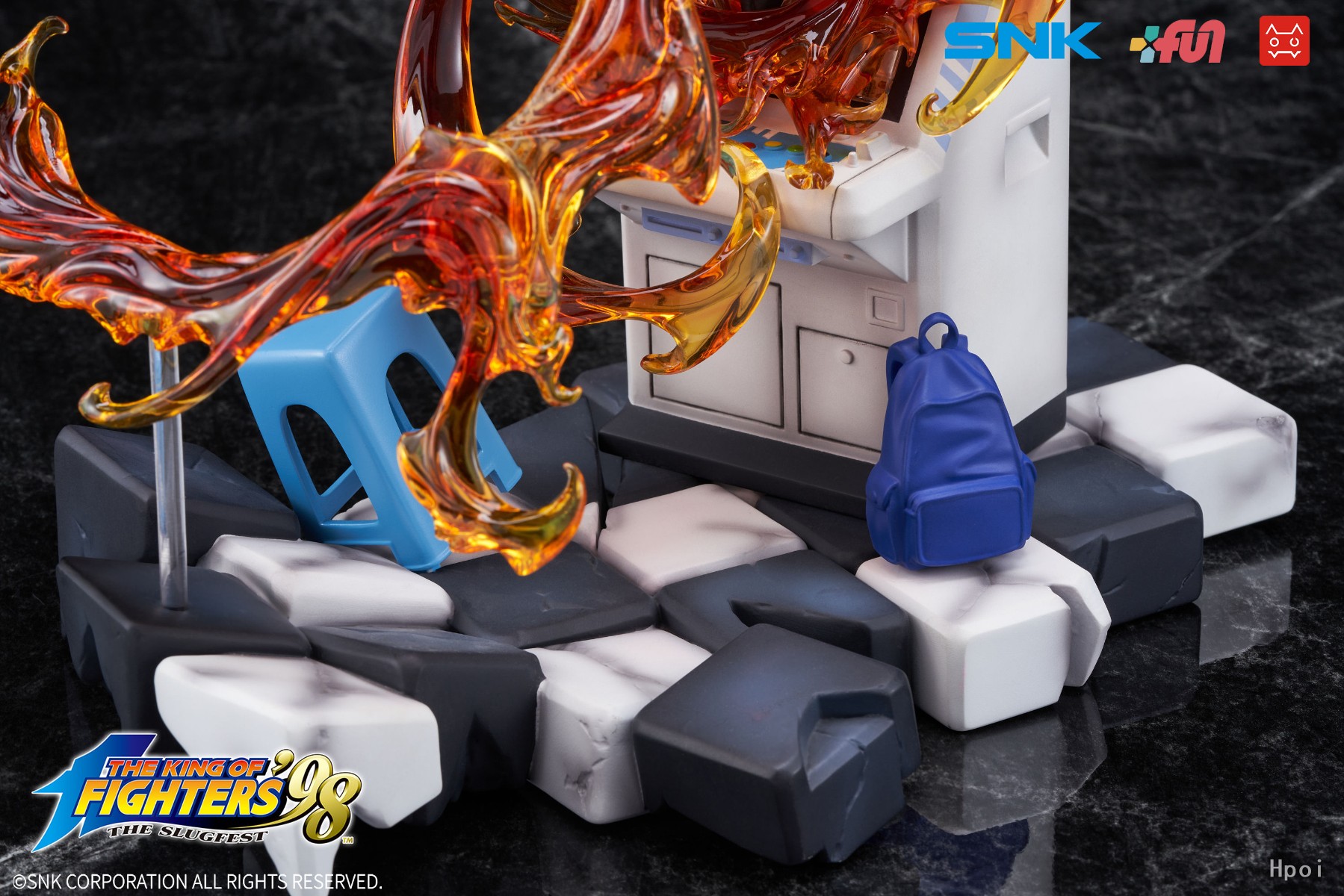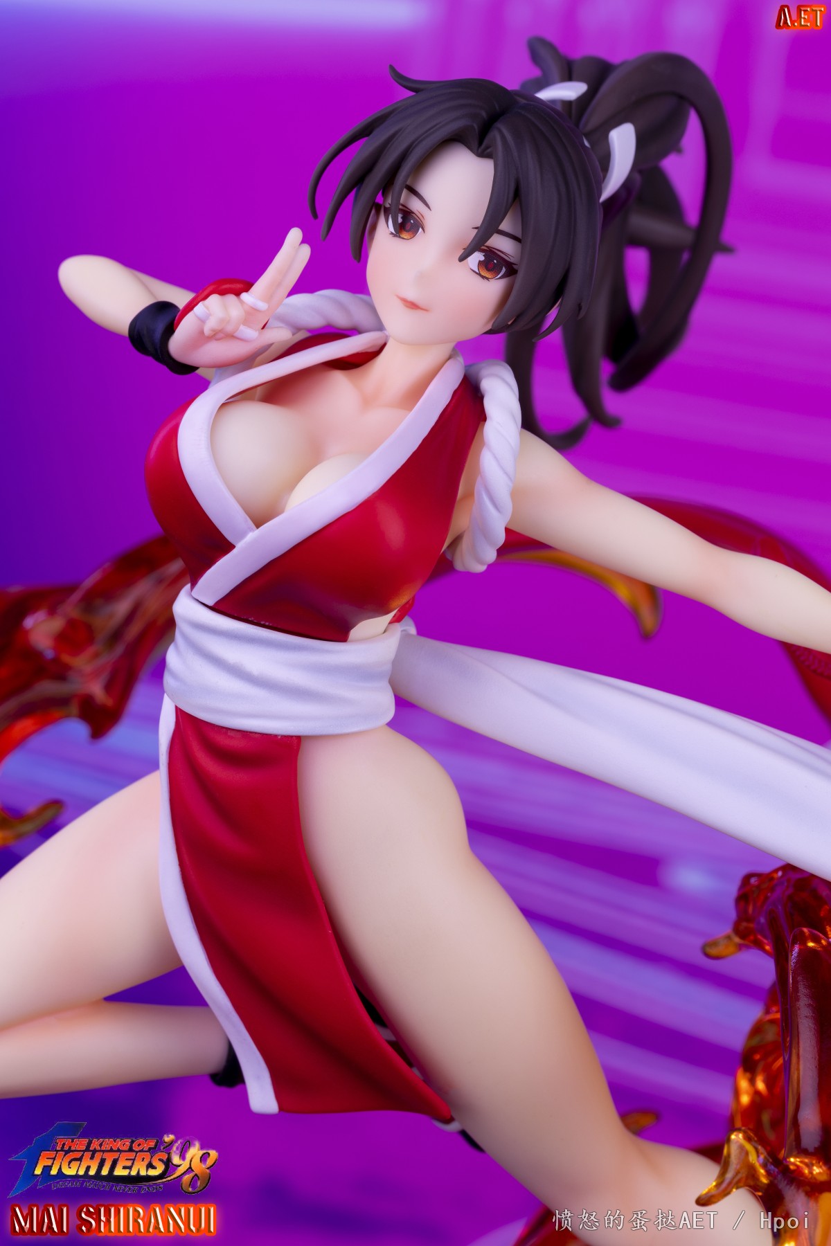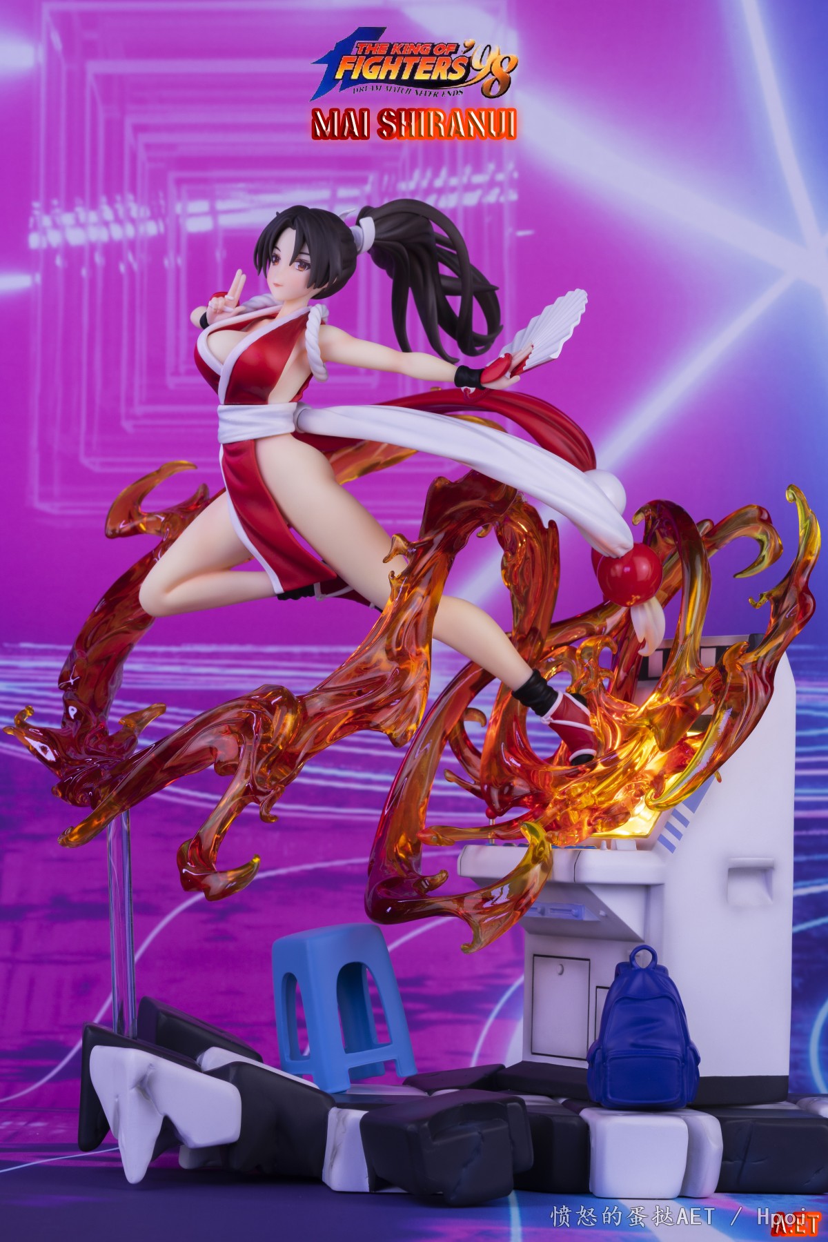 SNK正版授权模物TOYS《拳皇 '98》不知火舞手办,本次造型上完美还原不知火舞的傲人身材,包裹着绚丽的火焰从街机之中打破次元壁穿越到现实.场景采用记忆里游戏厅的形象,细致刻画的街机和角落的学生书包,及被火焰冲击力震荡开的的塑料椅.使得整体更加立体生动!