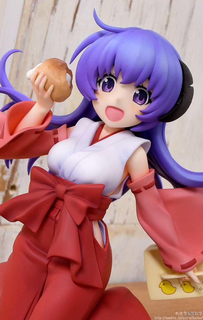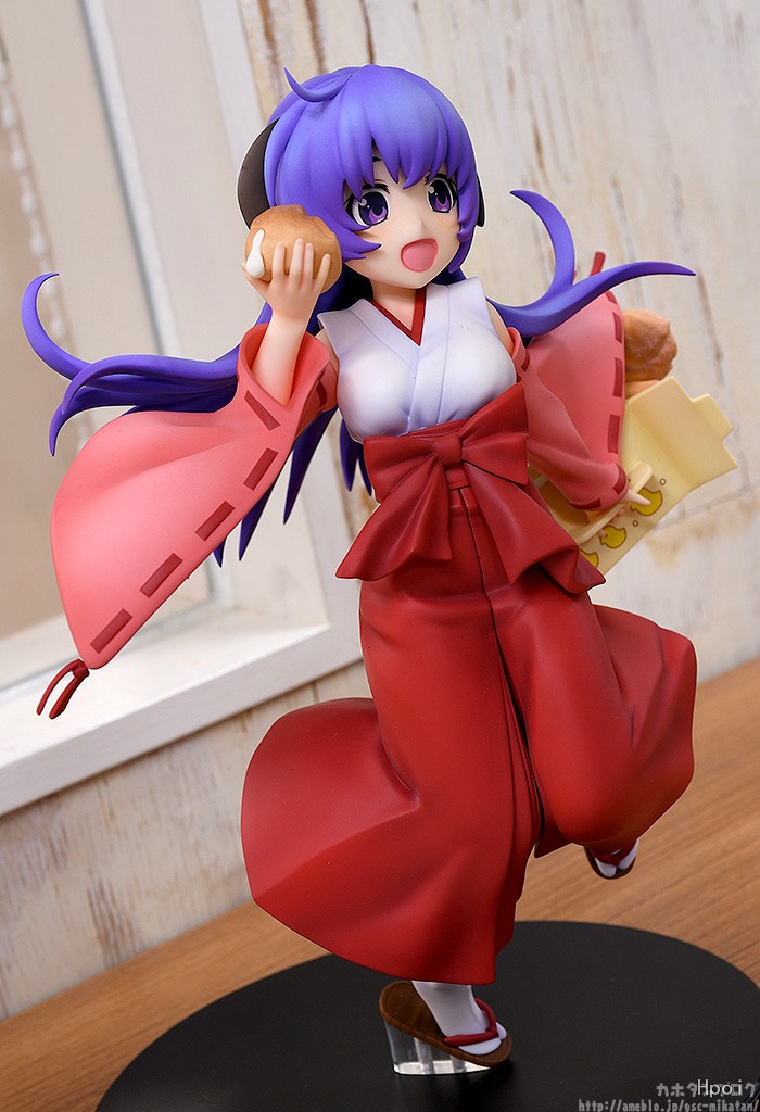 出自《暮蟬悲鳴時 卒》,「羽入」化身為1/7比例模型登場。將一手拿著最喜歡吃的泡芙,帶著天真笑容雀躍可愛的羽入製成模型。巫女服裝的顏色、質感,以及充滿躍動感的動作等,徹底重現不管從哪個角度欣賞都是看點的模型。快來帶回家吧!