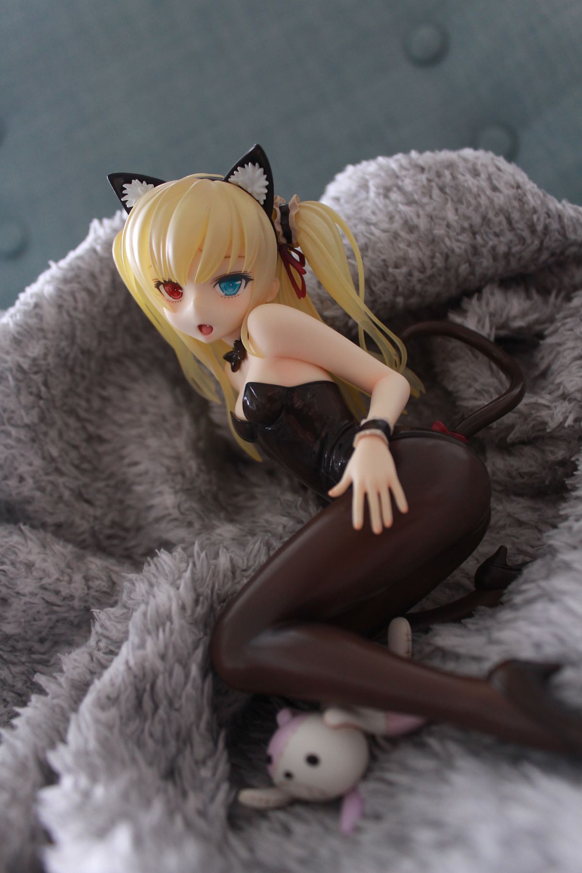 人気アニメ『僕は友達が少ない』より、身も心も厨二で残念な妹「羽瀬川小鳩」が登場です。普段のゴスロリ衣装から一転、猫をモチーフとしたレオタード衣装に身を包んだその姿を、少し大きめの1/7サイズで立体化。眉を寄せ、戸惑う様にこちらを見つめる仕草を魅力たっぷりに仕上げました。同日案内の「高山マリア」(別売り)と一緒に並べて、「隣人部」年少組の魅力に触れて下さい。