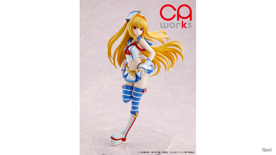 由Chara-Ani的新生代模型品牌“CAworks”献上。出自《出包王女DARKNESS》,「金色暗影」化身为1/7比例模型!与平时风格不同的“偶像服装”,重现出非常耀眼可爱的模样!以蓝与白色为主色调的爽朗水手服,帽子、皮带与靴子上的锚型装饰采用金属涂装表现厚重感。身后的柔顺头发讲究地制成充满跃动感的造型,完整重现于海边闪耀的「金色暗影」的魅力!还附有「笑脸零件」,可赏玩喜好的表情。敬请将能欣赏害羞可爱的「金色暗影」带回家吧!