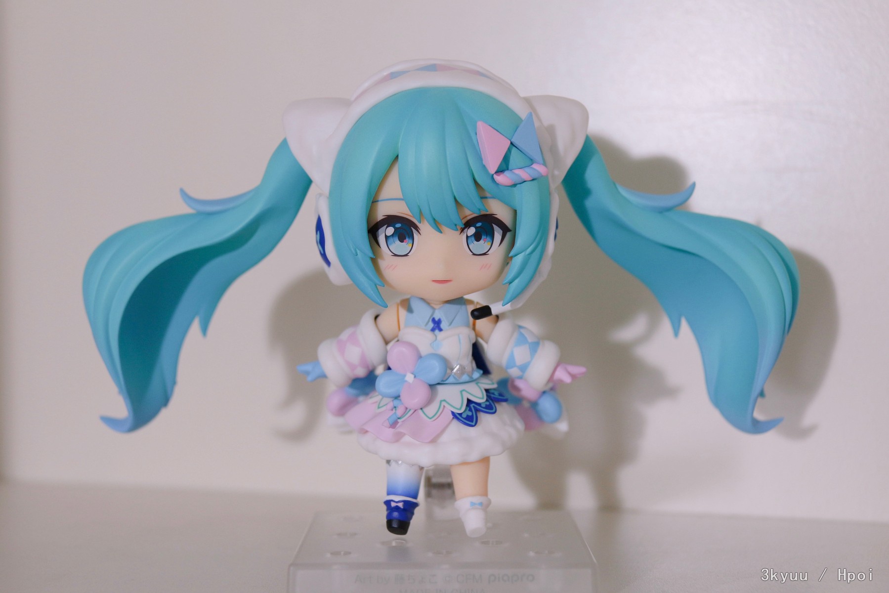 出自《Character Vocal系列01 初音未來》,「初音未來」以「MAGICAL MIRAI 2020 Winter Festival」主視覺圖中的服裝造型化身為黏土人!由繪師藤原所繪製,以“MATSURI“為服裝主題的初音登場。表情零件有溫柔的「普通臉」、開心唱歌的「唱歌臉」,以及嘴巴很可愛的「微笑臉」。配件有「手杖」、像水晶般的「手搖鈴」,以及可搭配「黏土人 初音未來 MAGICAL MIRAI 2020 夏日祭典Ver.」(另售)使用的「牽手零件」!快來把MAGICAL MIRAI樣式的特別初音帶回家吧!