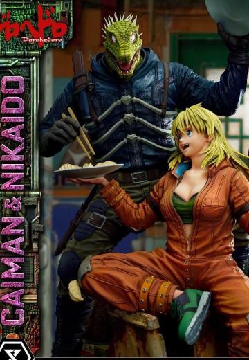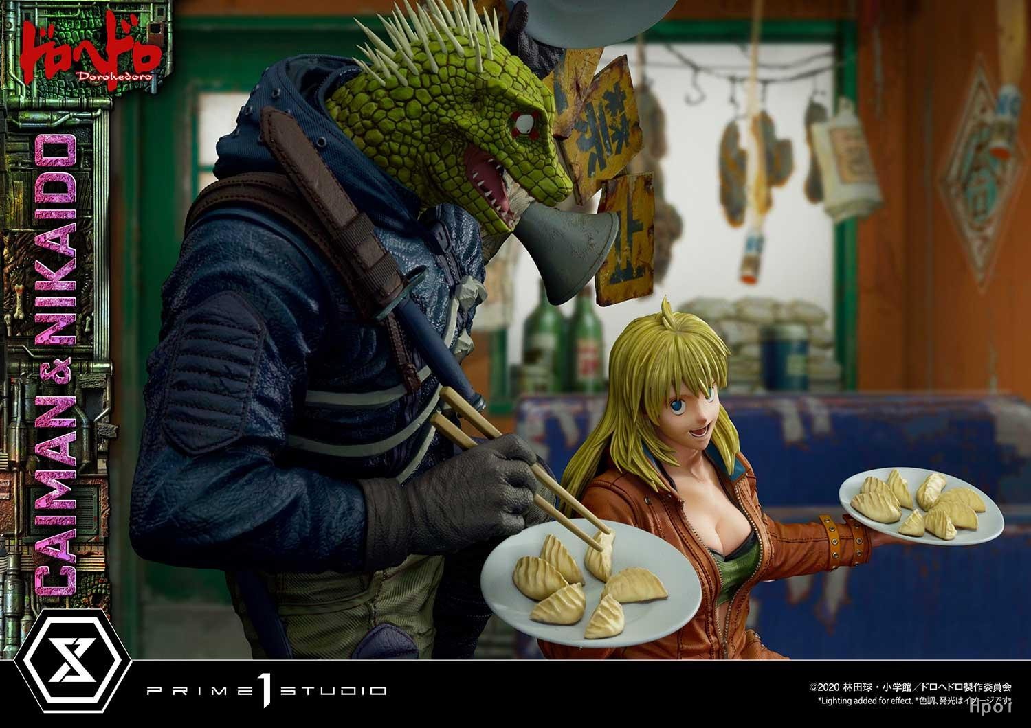 被魔法师夺走记忆,人类的面容被蜥蜴的头颅所取代的开曼,和他的伙伴,身为饭店"空腹虫"店主的二阶堂。在原作形形色色的场景中,Prime1Studio选择了将二人一起愉快吃着紫苏饺子的场面进行无比细致的立体化。通过精巧的雕刻和上色,两个人举着筷子笑得一脸纯真的模样,和与最重要的伙伴在一起时的轻松氛围得到了百分百再现。从开曼爽朗可爱的笑脸,到二阶堂肆意自由的金发,从硬朗的靴子到运动鞋的鞋尖,我们将堪称世界前列的雕刻技术融入到每一个细节。