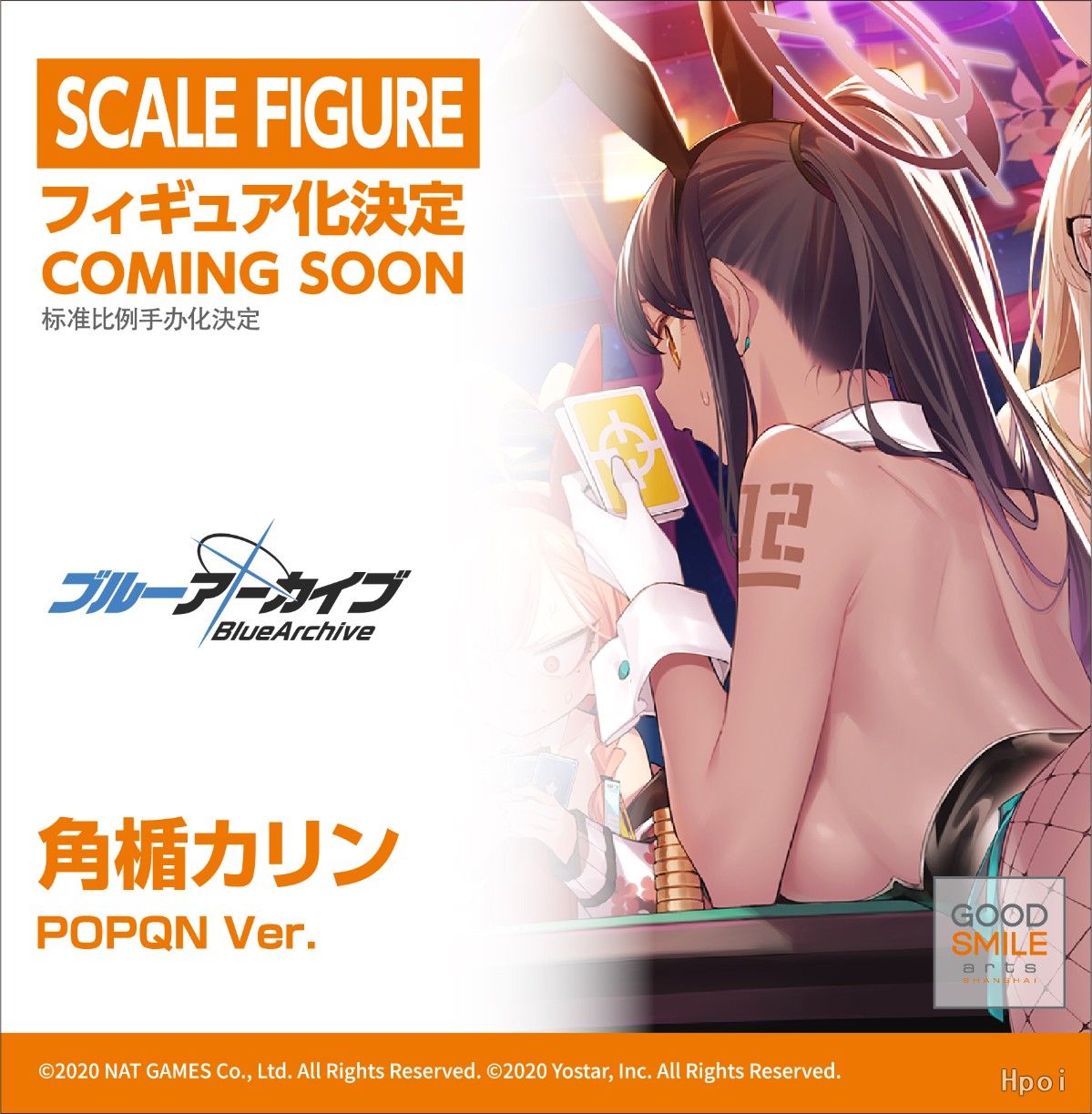 出自人氣遊戲《蔚藍檔案 Blue Archive》,「角楯花梨(兔女郎)」化身為1/7比例模型!忠實重現人氣繪師POPQN的畫風,手肘靠著桌子看著卡片的姿態,進行了高度還原。與「一之瀨明日奈(兔女郎) Game Playing Ver.」一同擺飾,更能重現POPQN的插畫——一同玩卡片遊戲場景。敬請將充滿不同魅力的花梨帶回家鑑賞吧。
