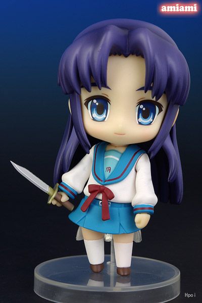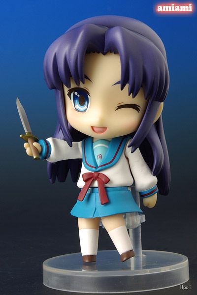 凉宫春日的忧郁中可爱的学园偶像/人造精神病杀手朝仓凉子是粘土人春日系列的第五部。她包括一把刀和手提包,以及足够的面部和手臂部件来重现演出中的任何场景。似乎所有这些还不够,她还包括许多部件来增强以前的 Haruhi Nendoroids,使她成为该系列中更加重要的一部分。