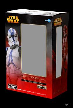 共和国軍兵士から帝国軍兵士へとその身を変えた「クローン・トルーパー」をエピソード3版で立体化しました。己の自我を持たない優秀な兵士が武器を手に闘う姿をリアルに再現。ストームトルーパーへの変貌を思わせる装甲服。またそれを彩る鮮烈なブルーラインのカラーリング、その手にするブラスターライフルも忠実に再現しました。「エピソード3:シスの復讐」でクローン兵士軍達が闊歩した、ジェダイ寺院の通路をモチーフにしたベースが付属いたします。