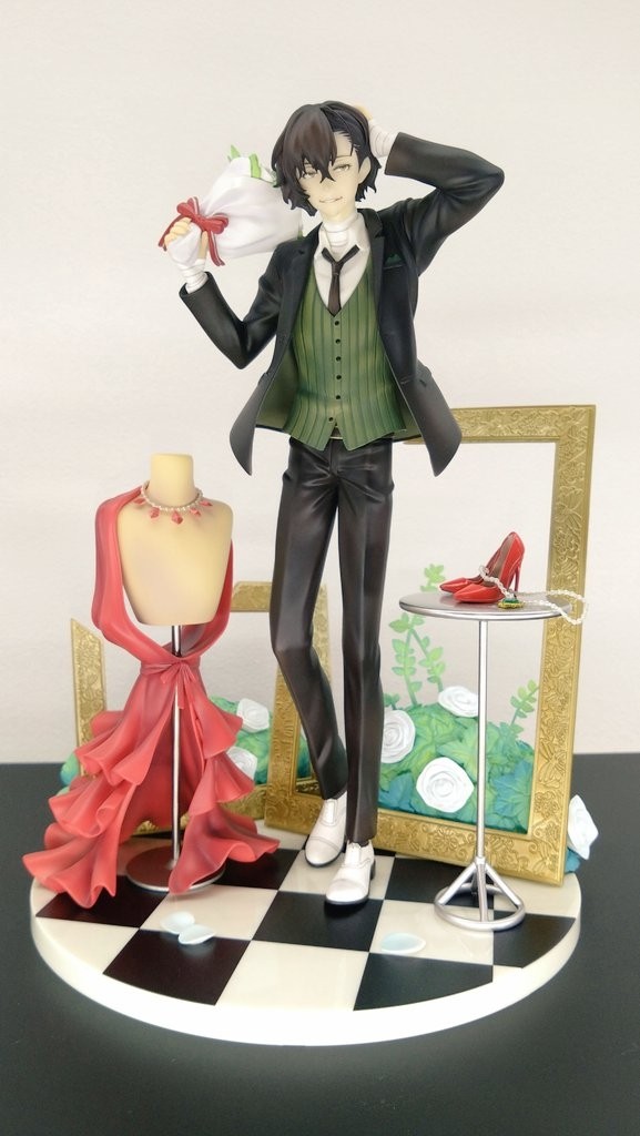 人气手游『文豪Stray Dogs 迷犬怪奇谭』中「太宰治」的正装造型手办化啦!质感优雅的服饰每个细节都力求还原。漂亮的花束、还有俏皮的表情,也将太宰治的魅力完美再现。豪华版的底座以原画为灵感,将充满派对氛围的礼服衣架和高跟鞋等配饰也细致的还原!为了邀请参加宴会而身着正装的太宰,请务必不要错过入手的机会!