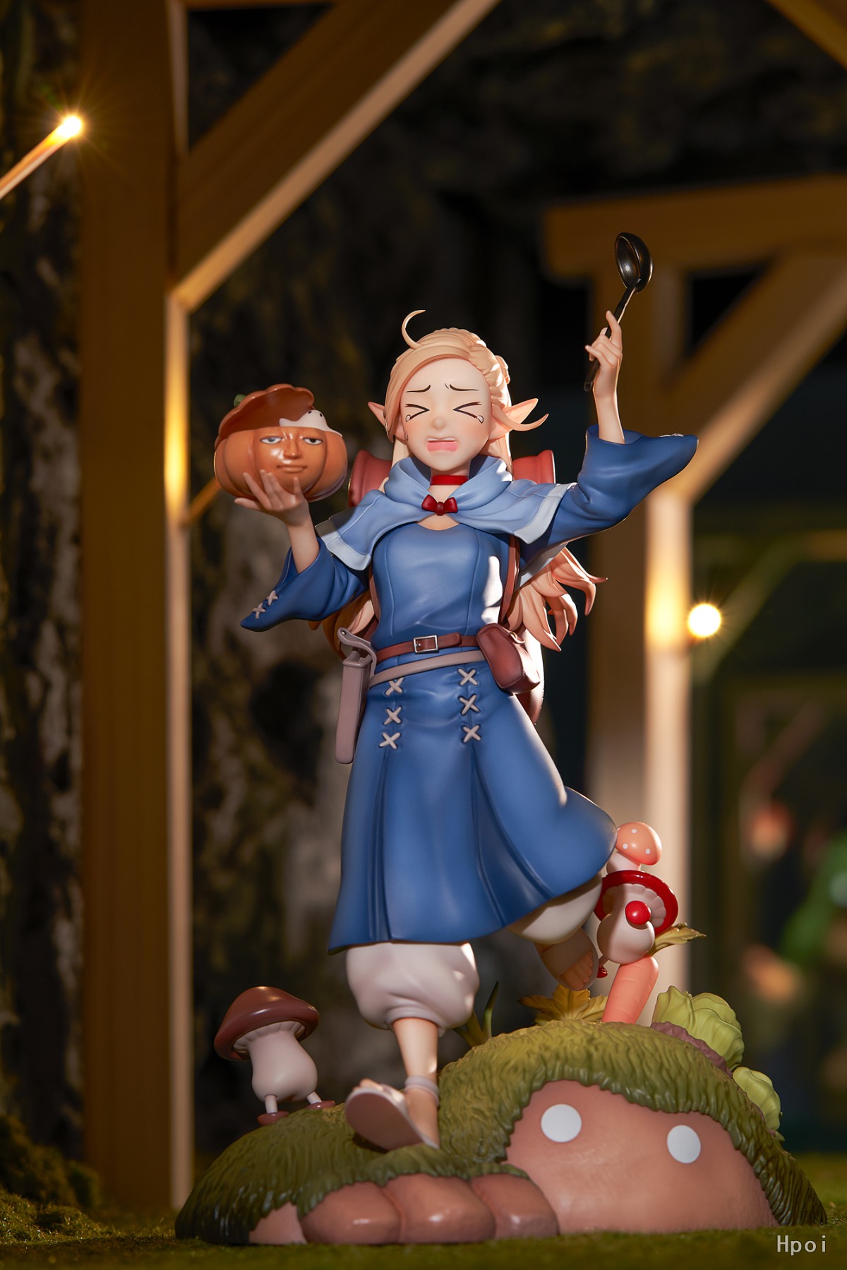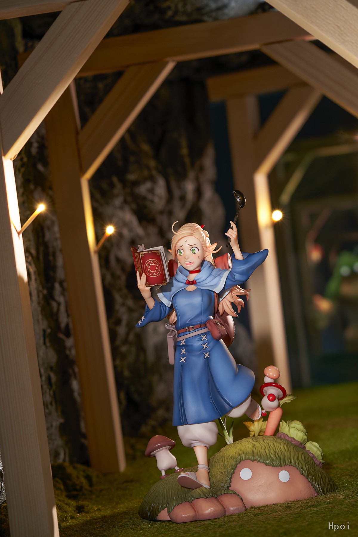 手持汤勺和魔术书,玛露西尔正慌张地向前跑来。细致的涂装造型生动展现出魔术师的魅力。跳跃的「行走菇」以及种满富含维生素蔬菜的「魔像」场景地台生动还原迷宫一隅。