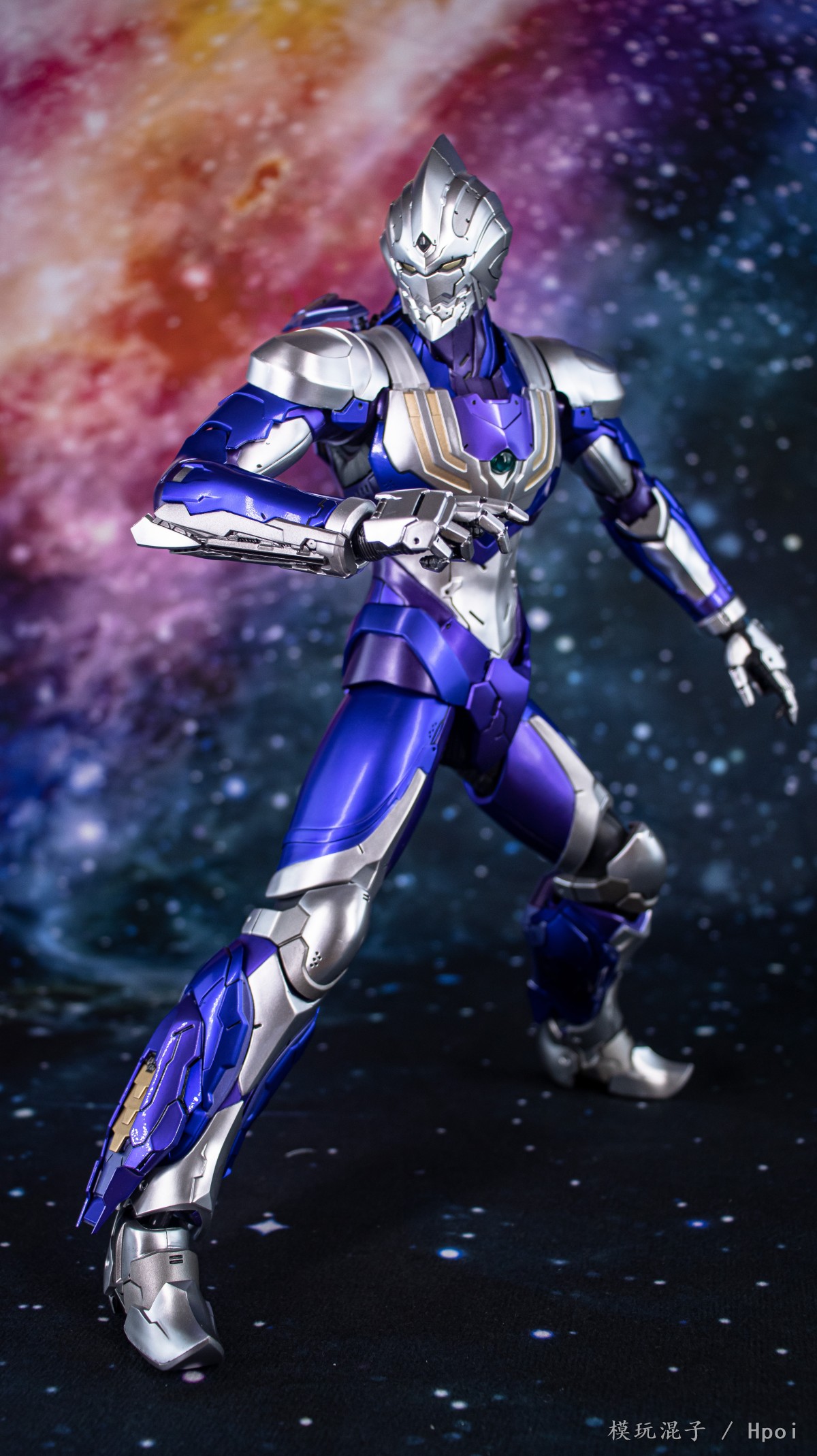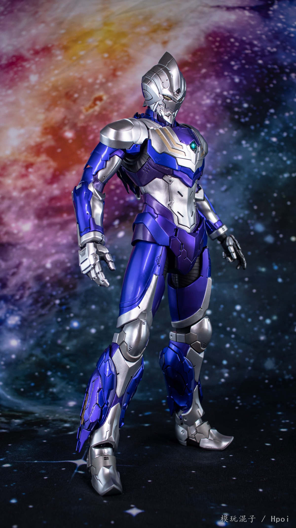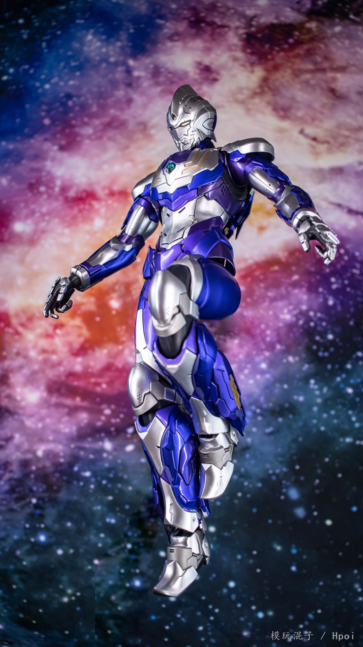 FigZero 1/6机动奥特曼装甲 迪迦 空中型可动人偶约31.6厘米高 (12.4英吋),全身超过47个可动关节,在细致的装甲花纹配上金属色效果,并混合使用了压铸锌合金技术和其他金属零件。眼睛,前额上的迪迦水晶,及胸前的彩色胸灯均采用LED发光功能。
