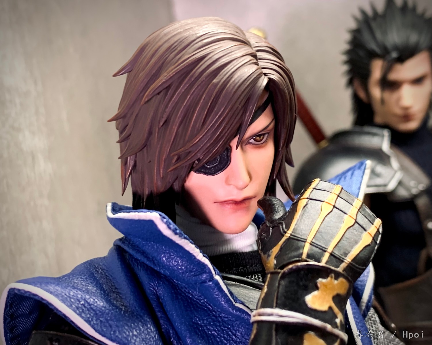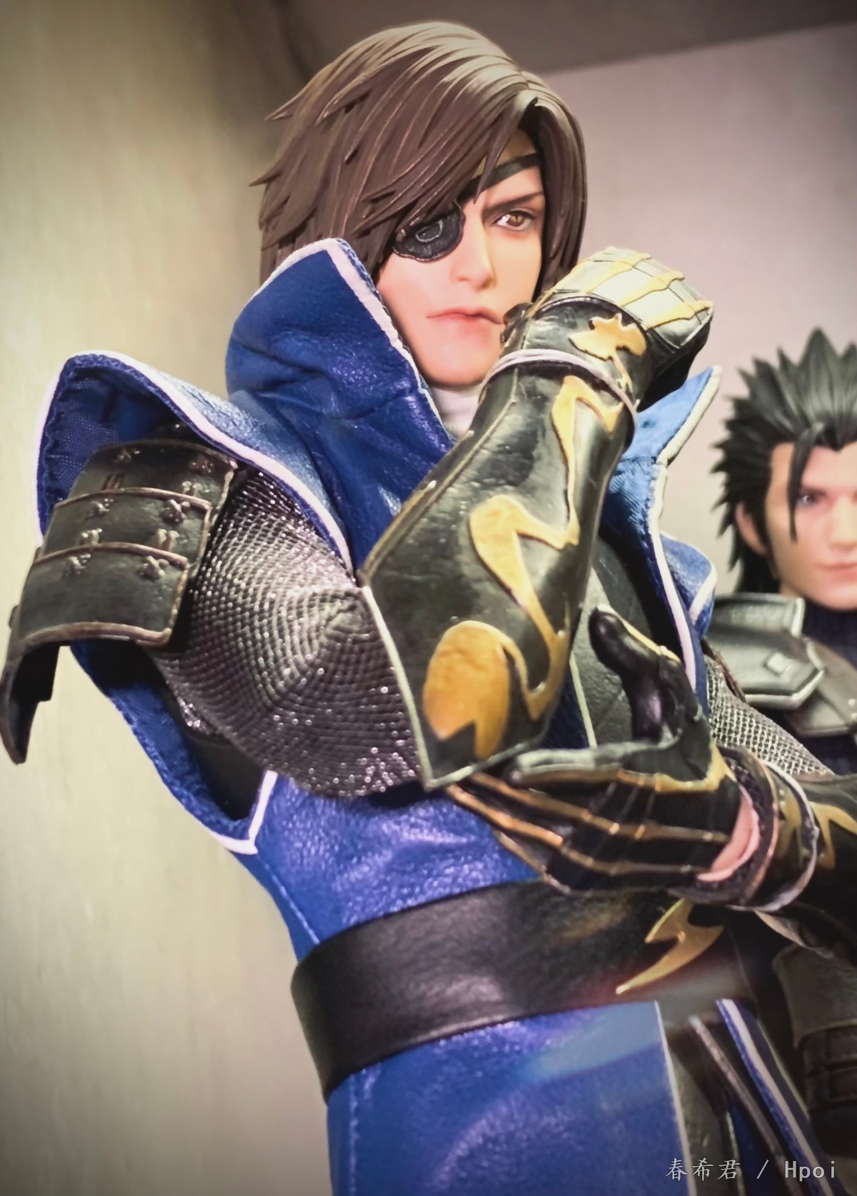 产品配置: -二次元比例男素体*1 -头雕*1 (微笑表情) -替换手型*10 -头盔*1 -胸甲*1 -裙甲*2 -臂甲*2 -手甲*2 -大腿甲*2 -小腿甲*2 -鞋子*2 -人偶展示地台*1 服饰: -蓝色上衣*1(选用真皮材质,后背图案印刷,领子和衣尾镶嵌金属线可造型) -蓝色长裤*1(选用真皮材质) -仿锁子甲高领里衣*1 -黑色皮腰带*1 武器配件: -六爪*1(合金刀刃) ※武器为6把太刀组成,合称为“六爪” 特典 -头雕*1(无头盔严肃表情)