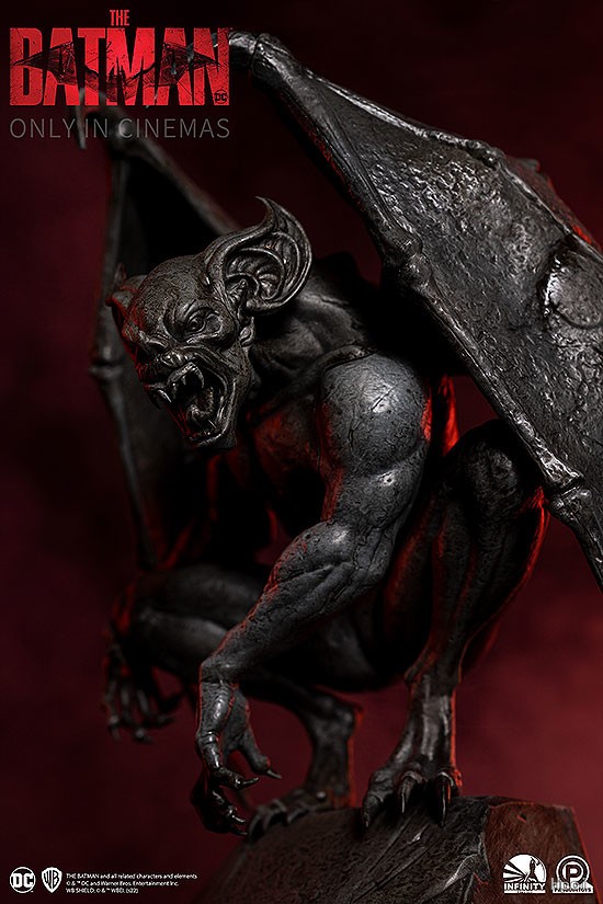 由羅伯‧派汀森飾演的主角蝙蝠俠/布魯斯‧韋恩化身為高譚市夜晚的傳說,將怒火發洩在所以罪犯身上。是為了復仇還是為了正義...以電影官方照片為原圖,重現這次電影的蝙蝠俠設計與蝙蝠俠戰衣。盾牌般的護臂中,隱藏蝙蝠俠特色的裝備之一——鉤繩槍。從胸甲略為突出的蝙蝠飛鏢(蝙蝠標誌)也是這次電影蝙蝠俠的特徵。蝙蝠俠所握著的信紙,如同電影寫著來自謎天大聖的留言。台座融入電設計元素與構思,創造蝙蝠俠特有的黑暗世界和氛圍。惡魔雕像採用磁鐵連接,可拆下單獨裝飾。這次也是使用Polystone、人工皮革與織物等,表現出厚重真實的質感。頭部使用鉑金矽膠及人工軟骨,另外鬍鬚和睫毛採用植毛技術,完整重現羅伯‧派汀森特色的臉龐。