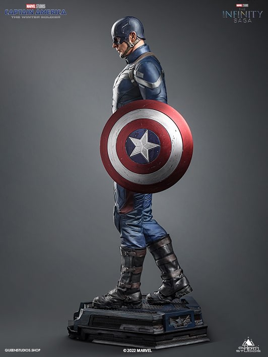 这尊 1/4 比例的雕像由宝丽石制成,描绘了美国队长右手握紧拳头并手持盾牌的样子。在美国队长出演的所有电影中,他一直都是英姿飒爽、正义感十足的,而Queen Studios的团队也竭尽全力将这些元素捕捉到了雕像中。