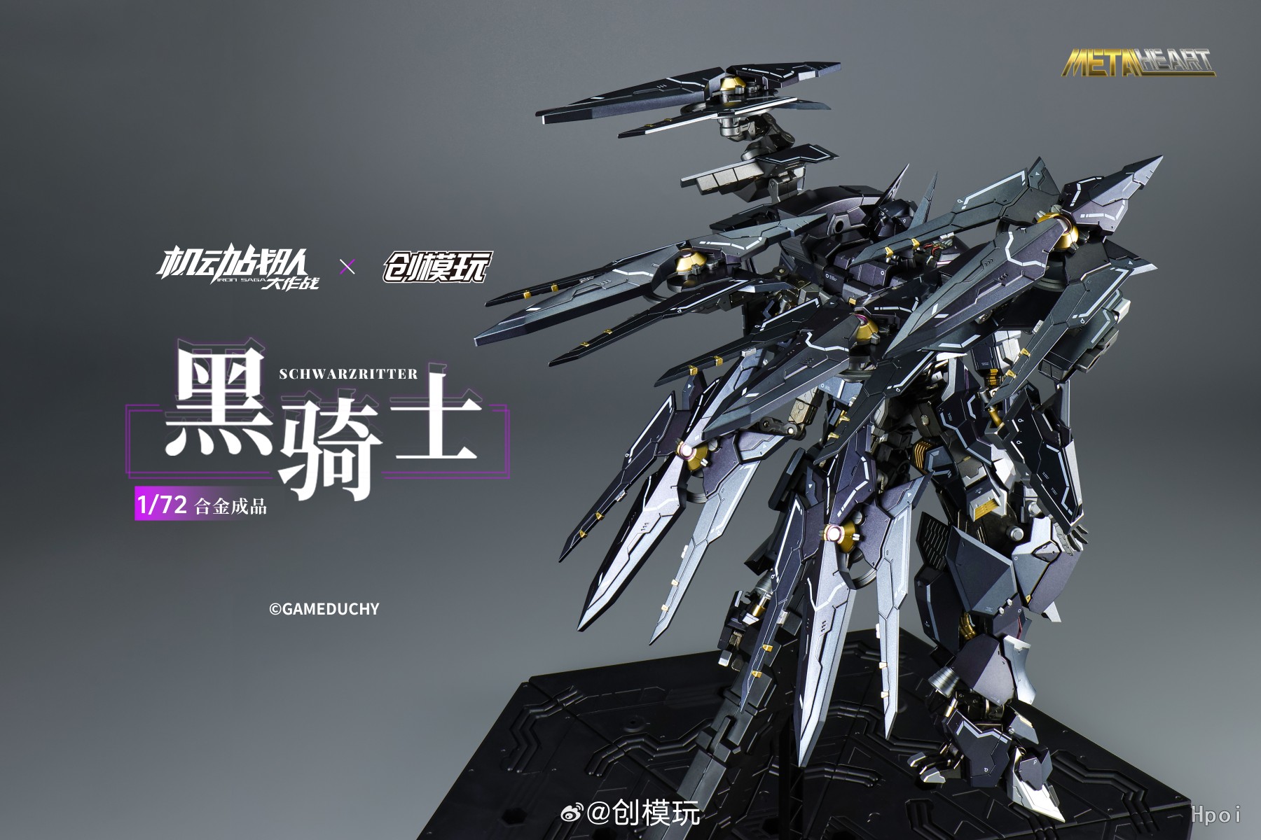 本次产品采用了全身合金骨架结构并配合高韧性赛钢(POM)材料,保证了模型的质感和耐用性。机体带有多段可动设计,关节运动时带有联动效果,增加可玩性。武器有多重组合样式,可自由搭配。同时,模型外甲黑色部分采用 2 种不同质感的金属漆进行诠释,模型总计 8 种分色,还原出机体上的纹路、武器的光泽细节。通过多种武器替换与搭配,可在西洋剑士的灵活身姿和重型骑士的厚重姿态间切换;搭配大型地台支架,可展示本体和隼盾的浮空身姿。