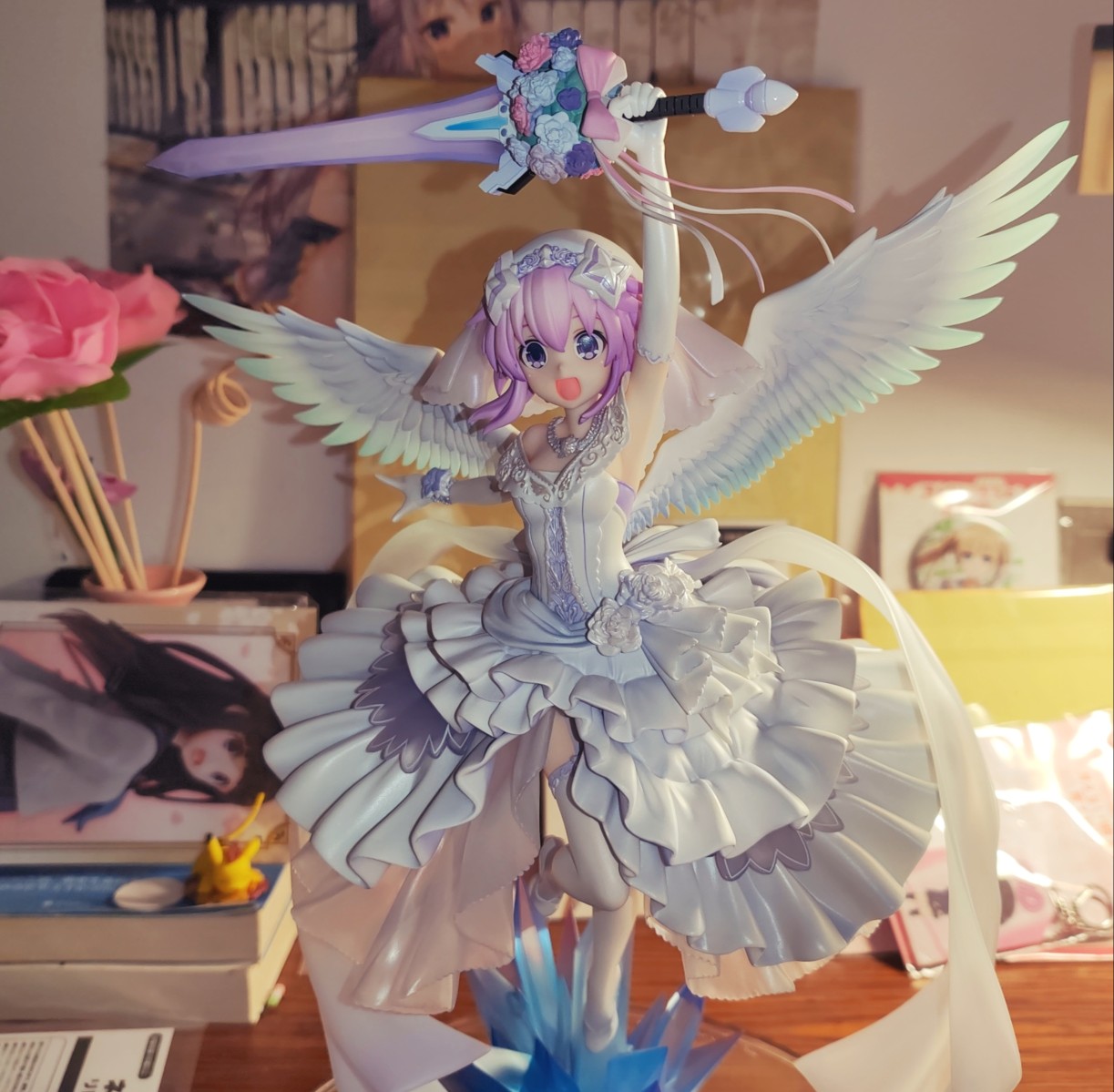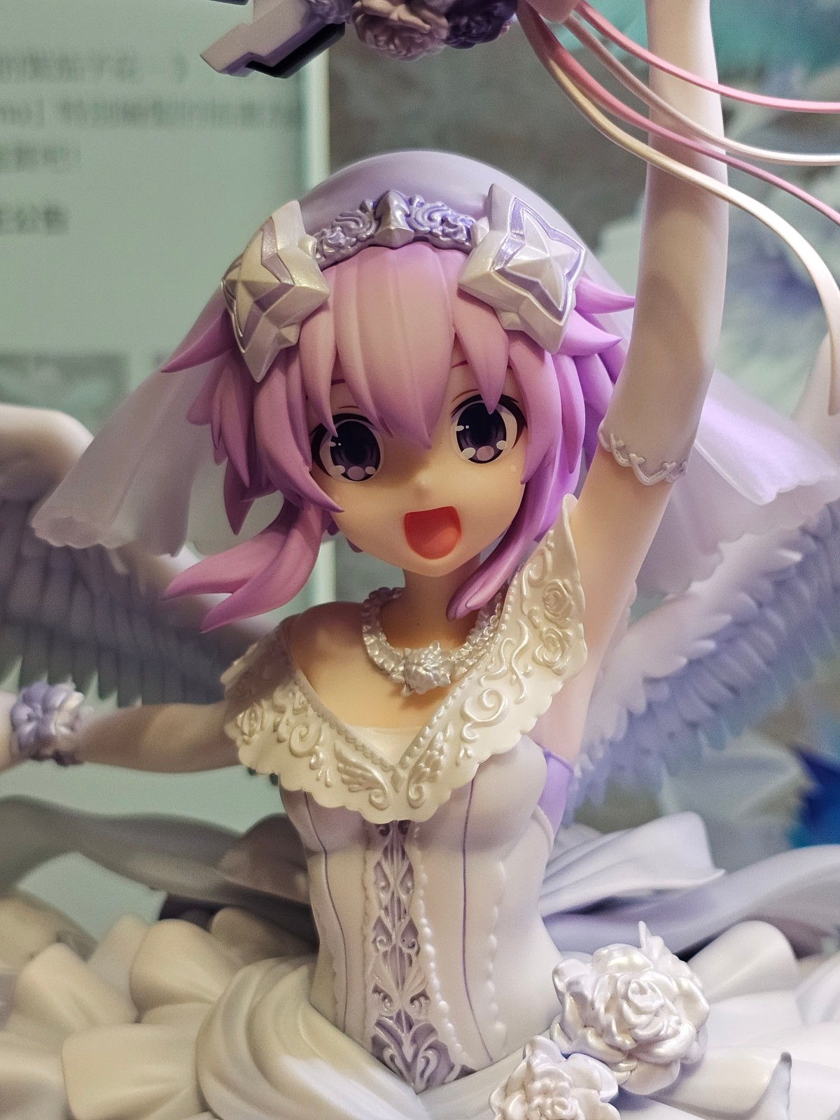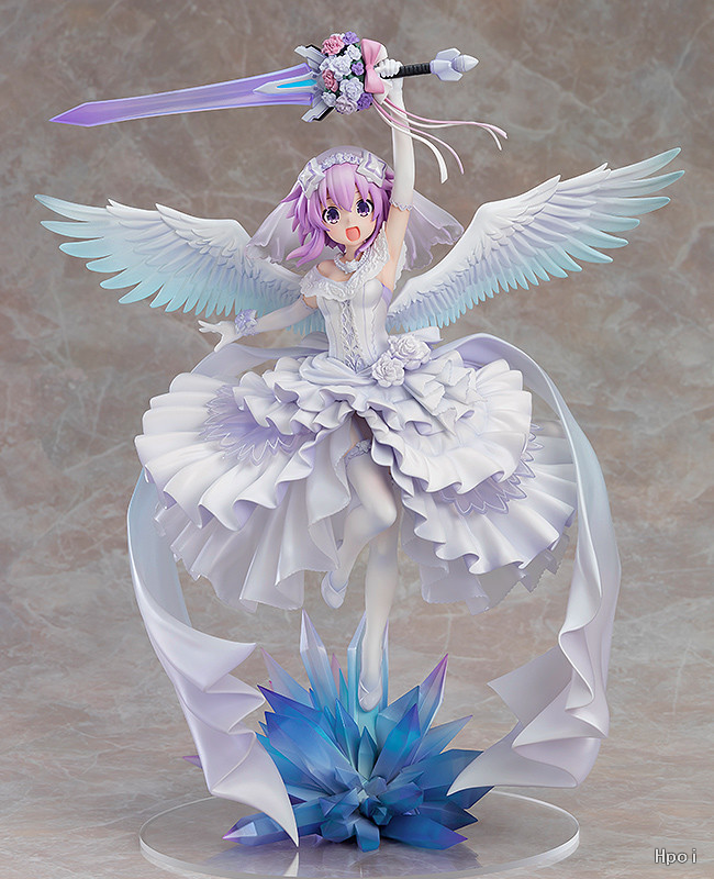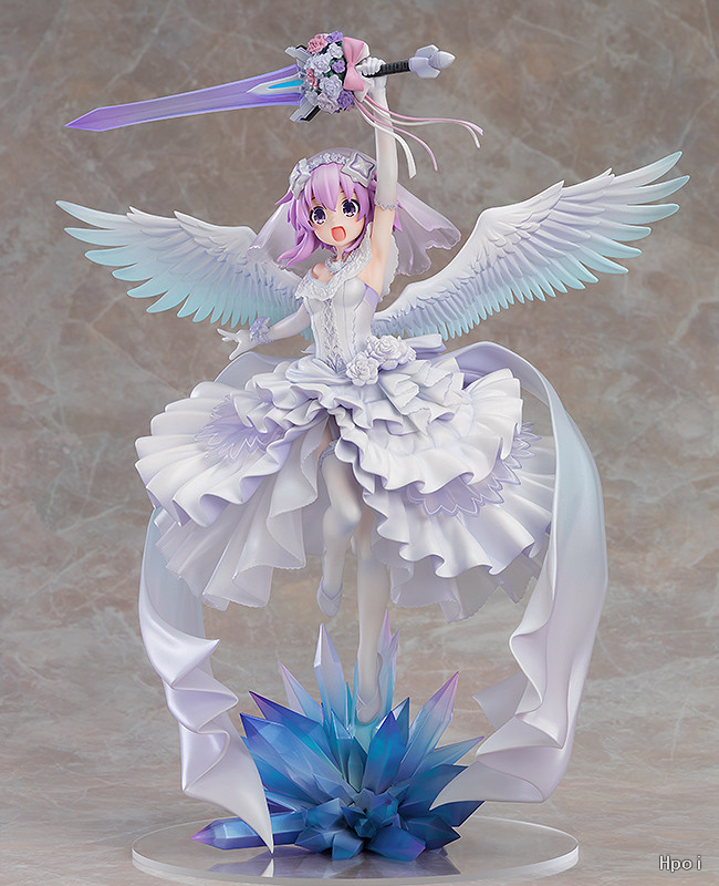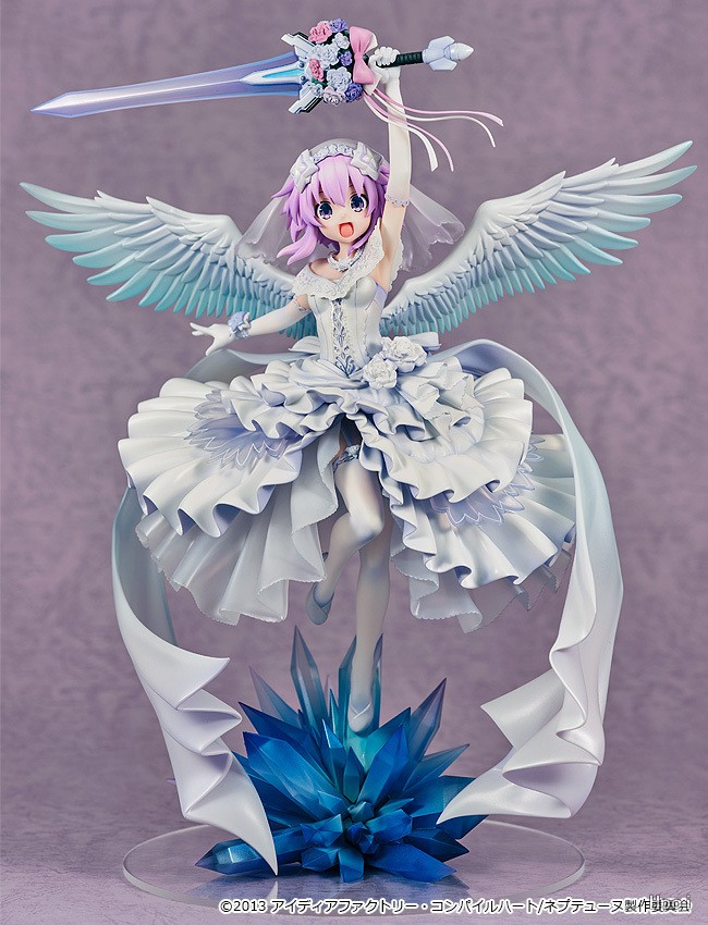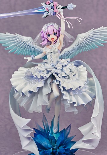 出自新作OVA《超次元戰記 戰機少女 ~沐浴陽光的紫茄子花~》,被信仰水晶光芒包圍著的涅普迪努,身穿純白的禮服顯現“紫茄子花”化身為1/7比例模型!以繪師「Urimo」特別繪製的插畫為靈感製成模型。高高舉起透明成型美麗的禮儀劍,彷彿成為回應祝福的華麗站姿。將她帶回家鑑賞吧!