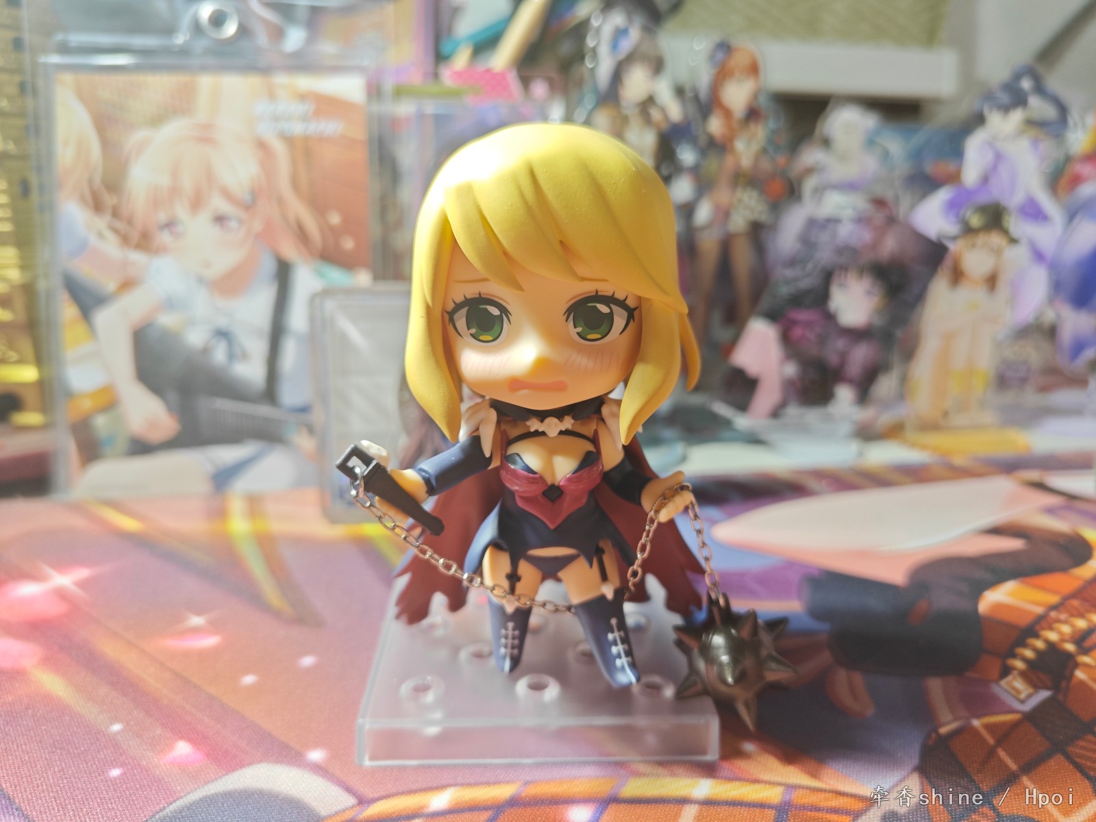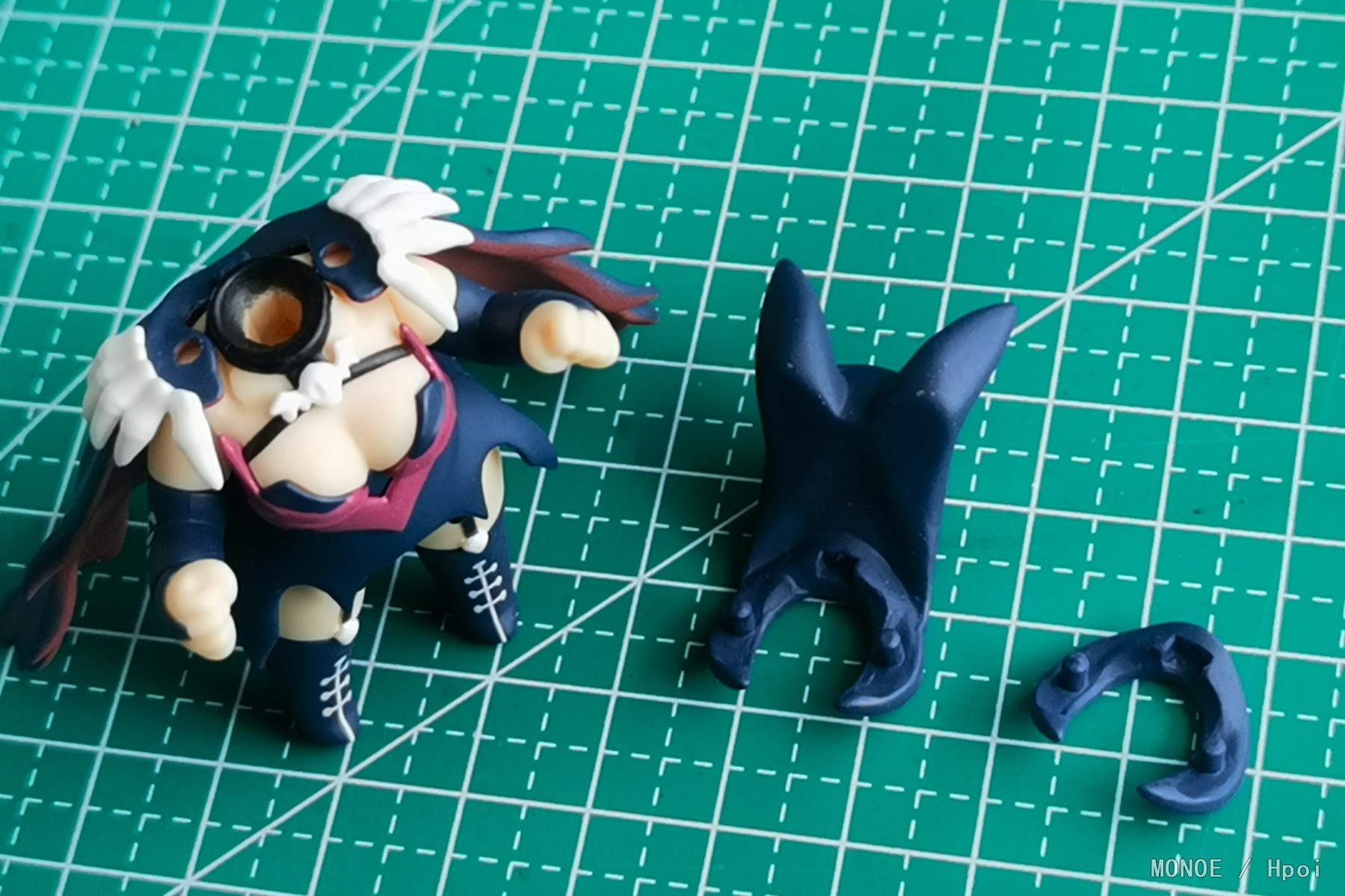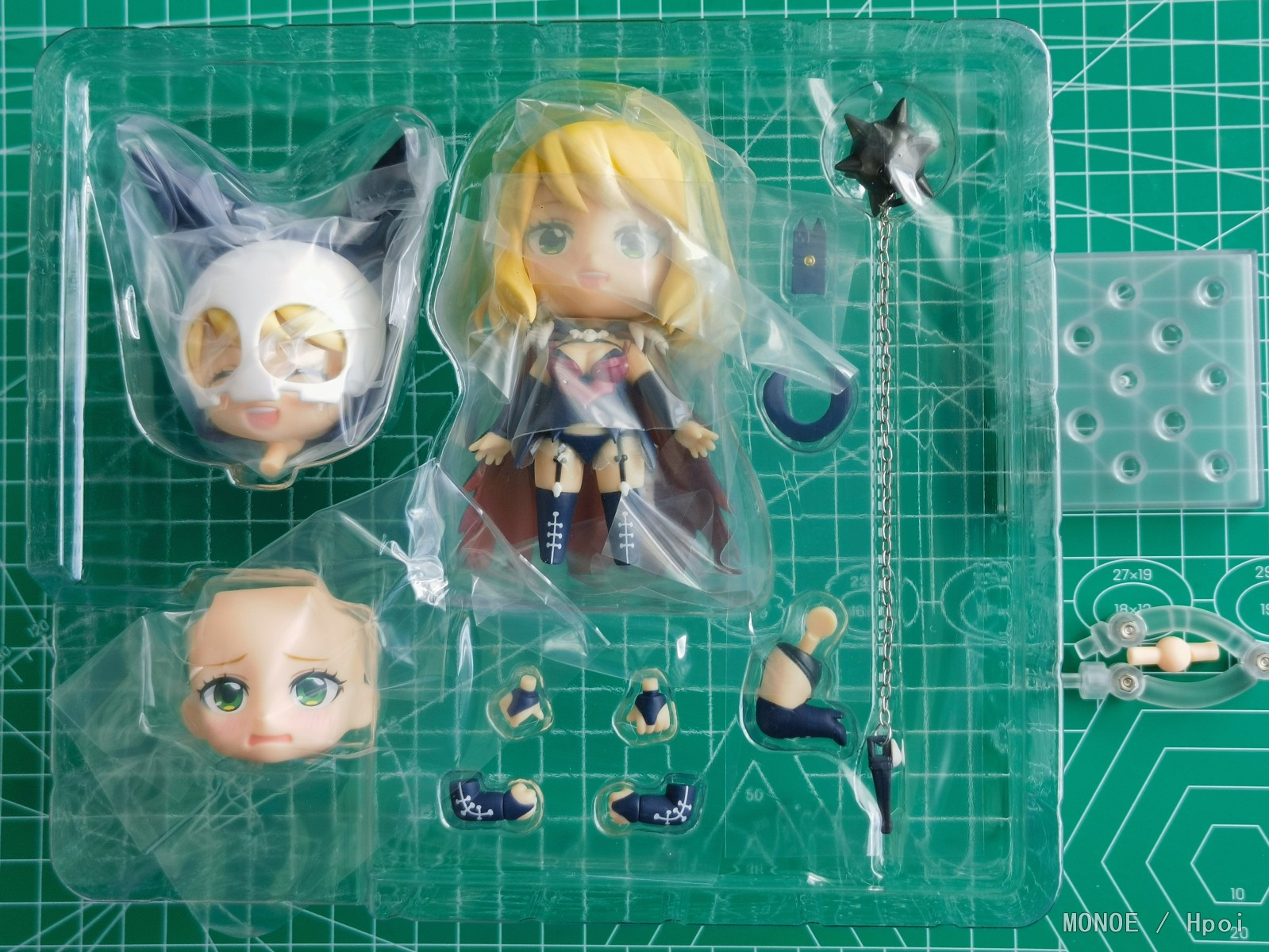 出自電視動畫《愛在征服世界後》,秘密組織月光的戰鬥員——死神公主「禍原死死美」化身為黏土人登場!替換用表情零件有「普通臉」、「笑臉」與羞澀的「害羞臉」三種。配件有武器「流星錘」及「智慧型手機」。另外附有可自由脫戴的頭罩,搭配「拆下頭罩零件」的頭部賞玩可愛的少女姿態!將她帶回家吧!