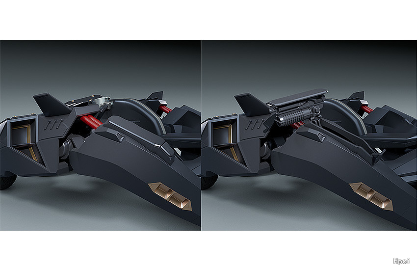 出自電視動畫《BLACK★★ROCK SHOOTER DAWN FALL》,主角「Empress」所使用的Hemiteos Unit支援高機動車輛「Black Trike」化身為PLAMAX模型登場!將作品中的模樣完整製作成組裝模型。重點部分採用軟膠零件,能重現變為「礫石車模式」的變形可動。搭配各成型色及上色完成零件,組裝起來便能重現其近似劇中的樣貌。可讓「figma Empress [BLACK ROCK SHOOTER]」(另售)搭乘。