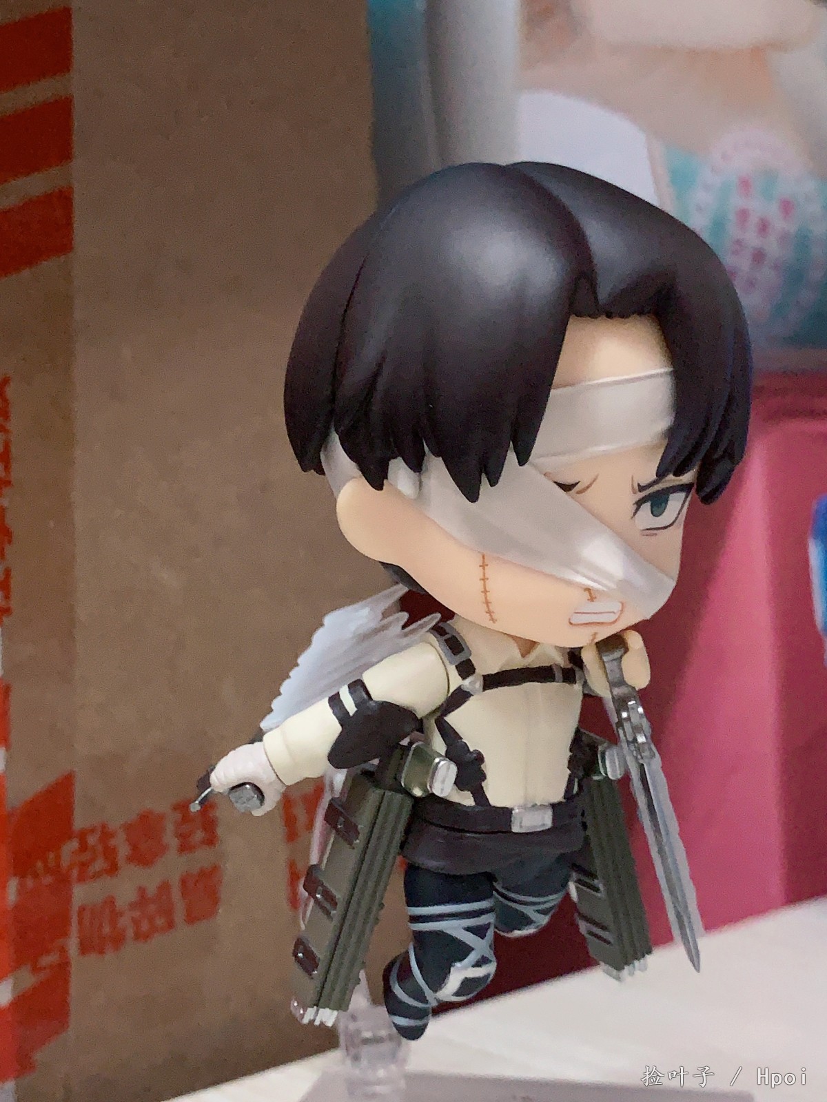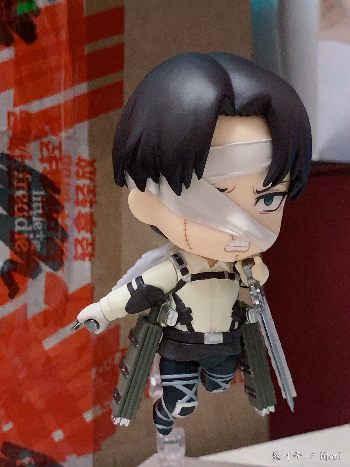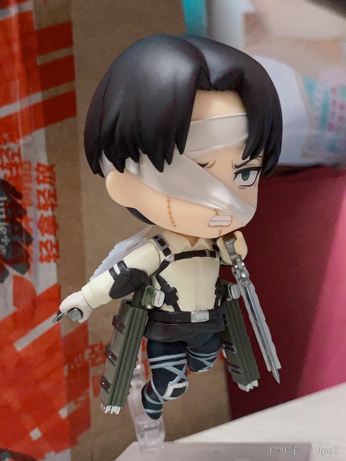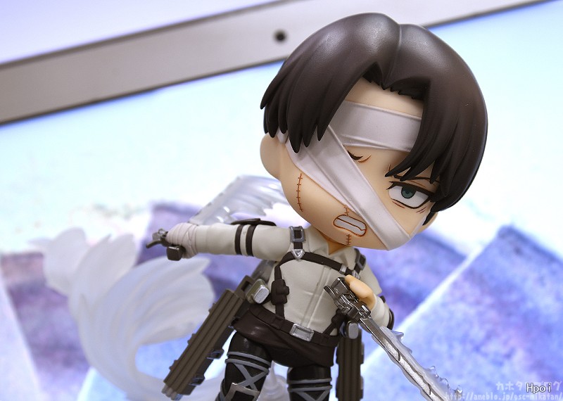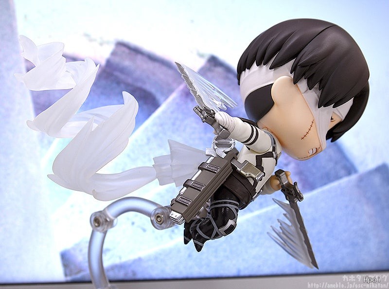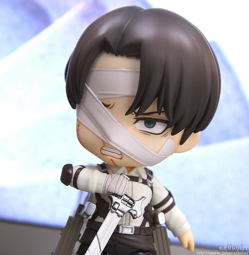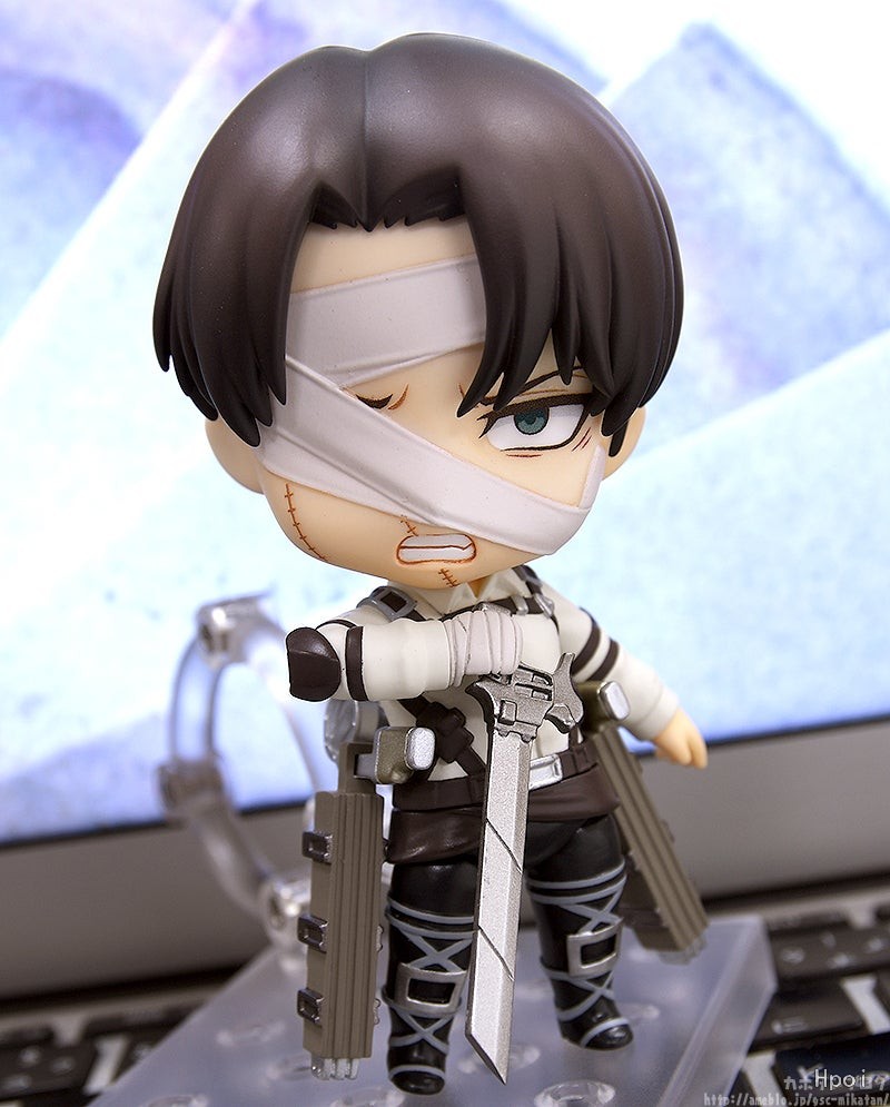出自電視動畫《進擊的巨人》,人類最強士兵「里維」以包著繃帶的姿態化身為黏土人登場!替換用表情零件有「普通臉」、「戰鬥臉」與「垂眼臉」。配件有「立體機動裝置」、「超硬質鋼刀」,以及「機動特效」,可重現充滿魄力的迴旋砍。將身穿新服裝的兵長帶回家吧♪搭配黏土人《進擊的巨人》系列一同賞玩!