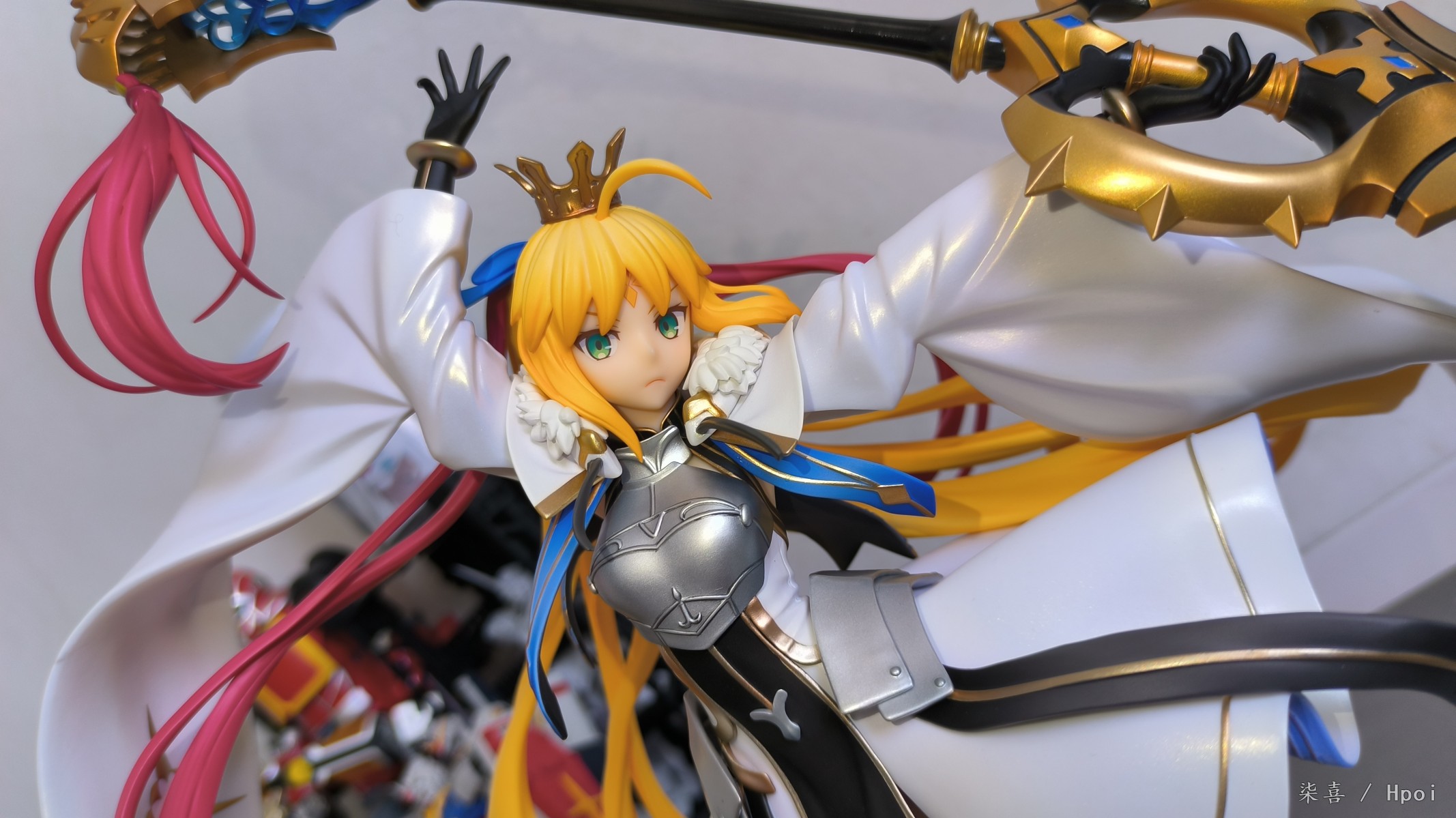出自超人氣手機遊戲《Fate/Grand Order》,Caster職階的從者「阿爾托莉亞‧Caster」以第三再臨姿態化身為比例模型。將像是在跳舞般的戰鬥中模式以極致的平衡與優雅的塗裝製作。服裝的細節透過精緻的造型呈現,以白色為基底的布料相當講究,使用的美麗藍色挑戰了模型漆料的極限,呈現一種發光的感覺,輕便的盔甲則保留了材質感,整體色彩乾淨俐落。忠實重現「神話禮裝馬米亞多斯」的設定,打造出光的反射及照射時,各種角度都能賞玩的塗裝效果。敬請將充滿活力且精美絕倫的「阿爾托莉亞‧Caster」帶回家鑑賞吧!