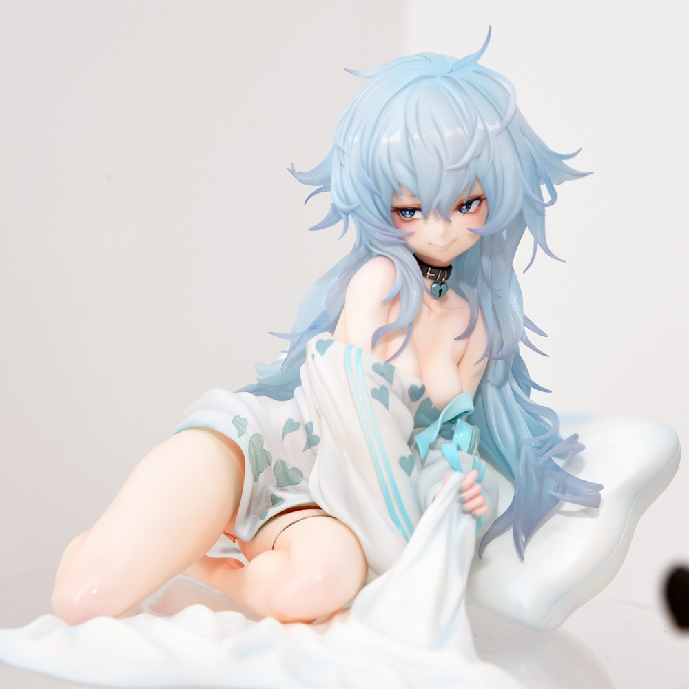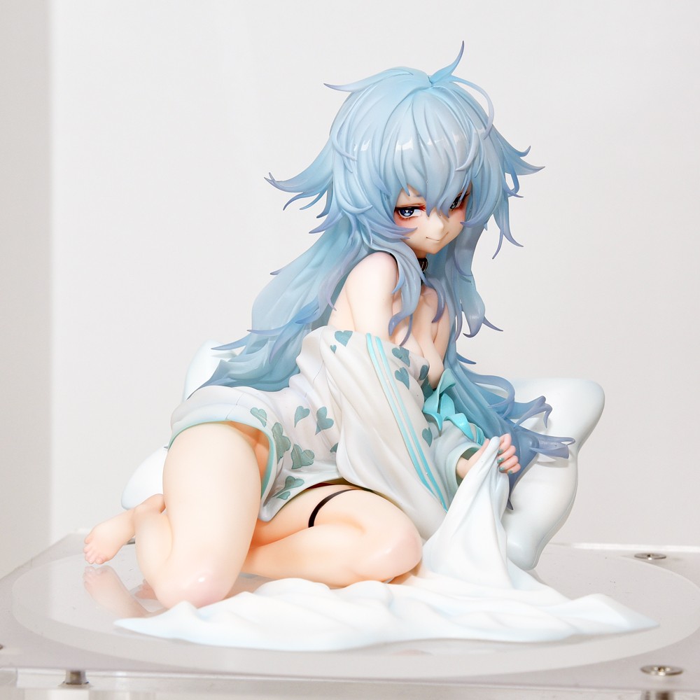 出自超人氣手機遊戲《少女前線》,手槍人型「PA-15」以服裝「奇妙山藥餅」的重傷版本為主題,化身為1/7比例模型。身穿Oversize的上衣露出大片肌膚,靠在抱枕擺出煽情姿勢,以及似乎在期待懲罰遊戲的笑容等等,充滿許多PA-15特色的作品。除此之外,頭髮和上衣使用透明零件,整體色彩營造出透明感。