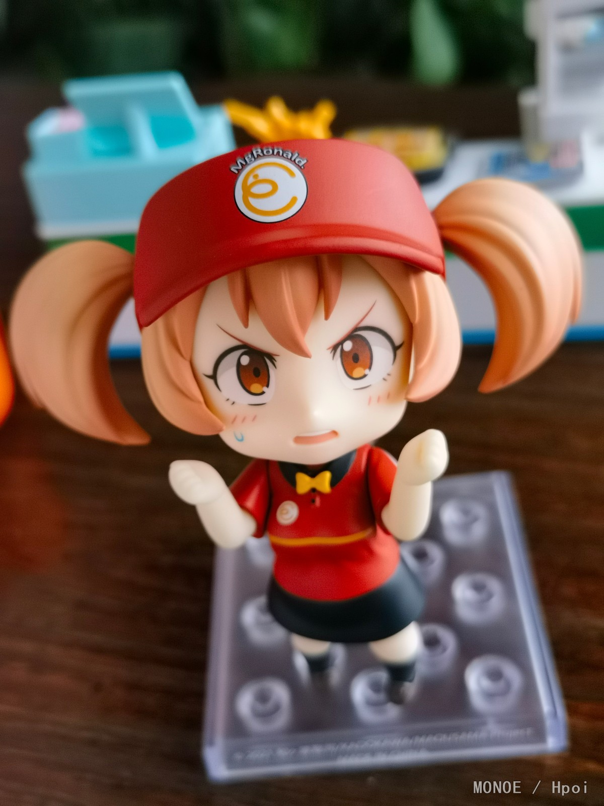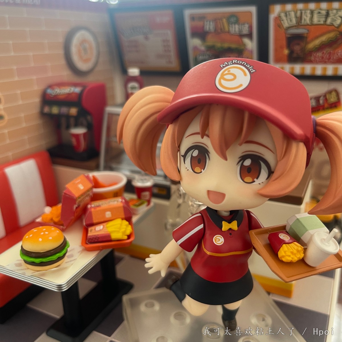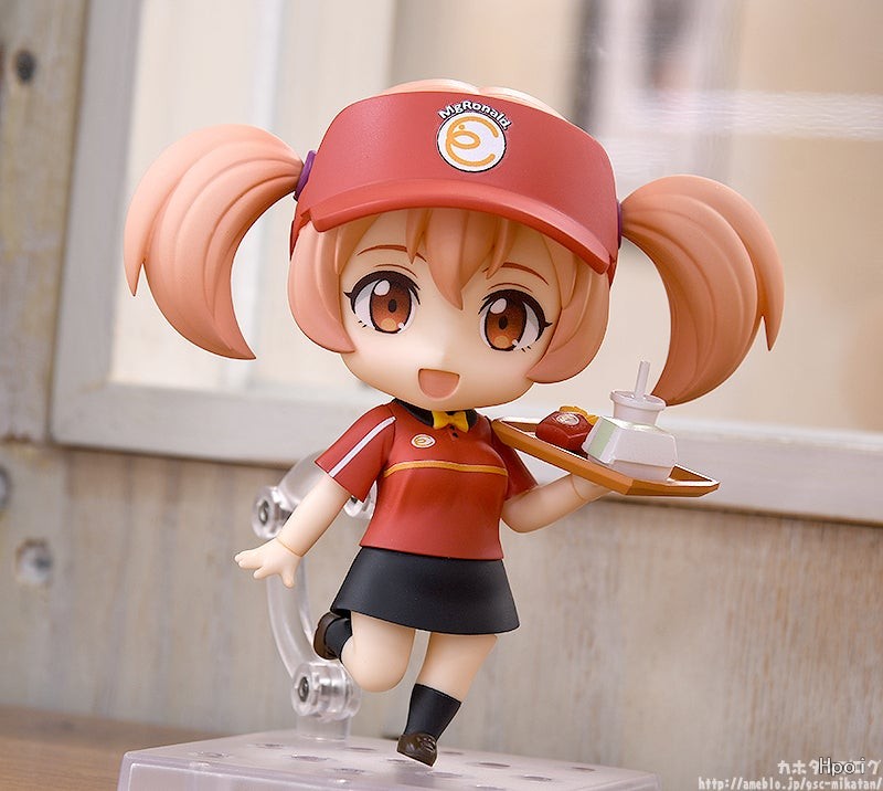 出自電視動畫《打工吧!魔王大人》,綽號“小千”的「佐佐木千穗」以麥丹勞制服造型化身為黏土人!替換用表情零件有「普通臉」、「害羞臉」與「震驚臉」。配件有放上麥丹勞餐點的「托盤」及「飛出去的薯條」,可重現各種情境。將變得小巧可愛的「黏土人 佐佐木千穗」帶回家賞玩吧♪