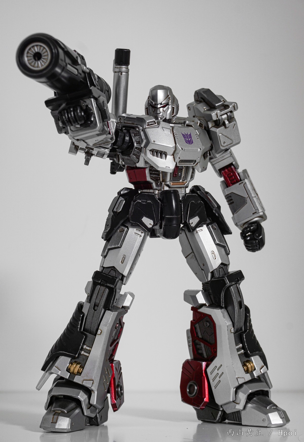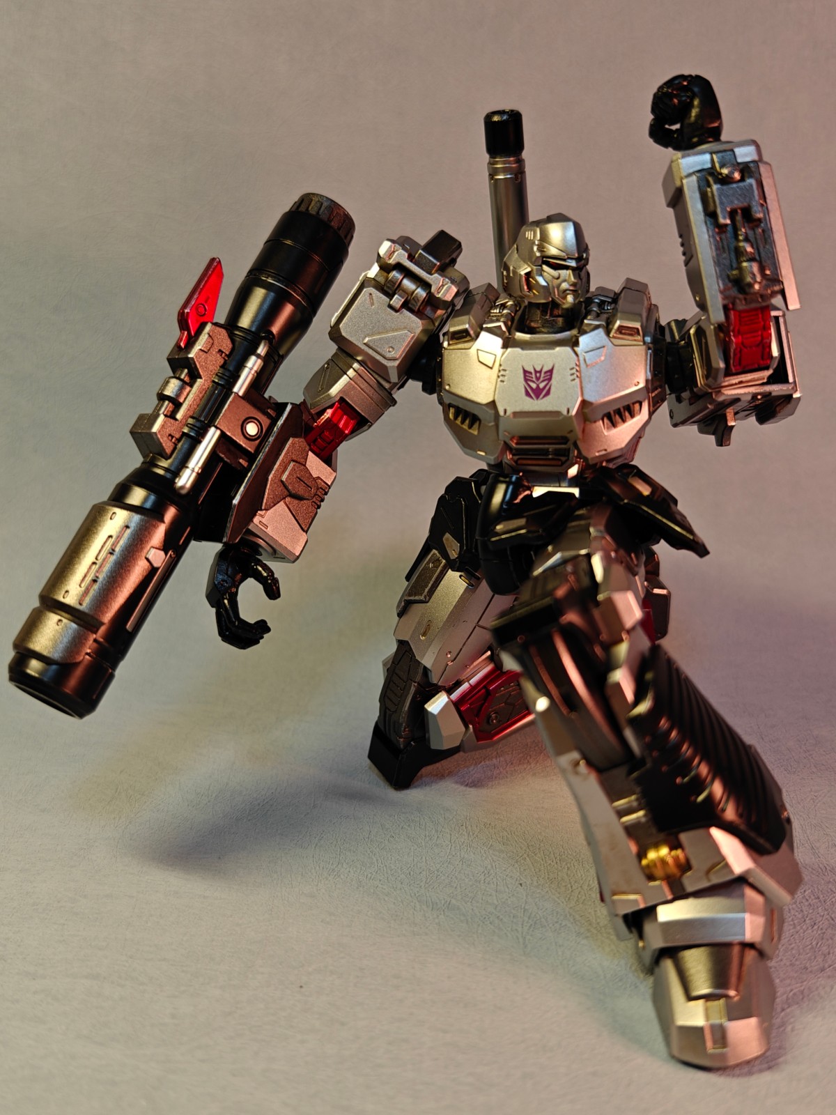 变形金刚MDLX威震天高约 7英寸(18厘米),具有约45个可动关节和压铸金属框架。配件包括一枝融合炮、一枝背炮和四组可互换手。