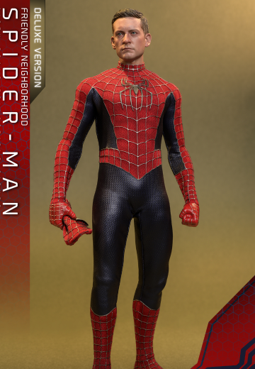 堪称史诗级的蜘蛛侠电影《蜘蛛侠:英雄无归》中,跨时空集结三代蜘蛛侠的画面,重磅引燃观众怀旧热潮。其中,由托比·马奎尔(Tobey Magurie)主演的《蜘蛛侠》三部曲系列,开创了超英电影新纪元,更以其「能力越强,责任越大」的核心,成为不少观众心中最具代表性的初代蜘蛛侠,友好邻居的形象在粉丝心目中占据着非常重要的地位。 Hot Toys聆听粉丝诉求,于夏日盛典2022强势推出《蜘蛛侠:英雄无归》友好邻居蜘蛛侠1:6比例珍藏人偶(豪华/普通版本)(特别版)! Hot Toys 特别根据电影造型设定精心打造全套标志性的红、蓝色的紧身蜘蛛侠战衣,采用高质弹性布材所缝制,精细地于布件上烫印了细密的滴胶仿布纹细节。同时,胸前与背部均饰有蜘蛛图案,搭配蜘蛛面罩头雕、上半身与双脚部分更饰有呈立体感的银色蜘蛛网状线条。为更贴合初代蜘蛛侠能通过手腕直接发射蛛丝的设定,特别备有多款形态的蜘蛛丝,以还原各个空中滑翔的动态。 随人偶附上两款头雕,第一款是以红色布料紧贴面形轮廓所缝制而成的蒙头造型头雕,头雕颈项上的网状线条与战衣衔接流畅,双目位置更能清晰展示底层纹理;而另一款则是Hot Toys以极高的工艺品质倾力打造,由托比·马奎尔饰演的彼得·帕克高像真头雕,将角色在岁月历练下所呈现出的沉稳神态做到极致还原。 此外,人偶还配备一支沙人的解药、一个蜘蛛侠面罩、多款形态的蜘蛛丝、多款不同造型的手掌和一个印有电影logo和角色名牌的动态地台 (动态地台仅普通版本配置)。 以上为标准版本设定,豪华版本将动态地台升级至友好邻居蜘蛛侠与宿敌——沙人,对战场景的雕塑级情景地台,地台建设在倒塌中的瓦砾当中,呈现出巨型的沙人形态,将电影中的对战场景活现于观众眼前,是一款远超珍藏定义的雕塑级作品! *豪华特别版配件: 章鱼博士机械爪