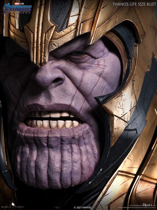 Queen Studios 灭霸 1:1 胸像以《复仇者联盟4》中的形象为原型。他的黄金装甲和头盔由宝丽石制成,柔软的皮肤由优质医疗级硅树脂制成。仔细观察,您会发现他的头部略微向下,眼睛凶恶地向前凝视。1:1的胸像以雕像艺术的形式高度还原灭霸的邪恶。