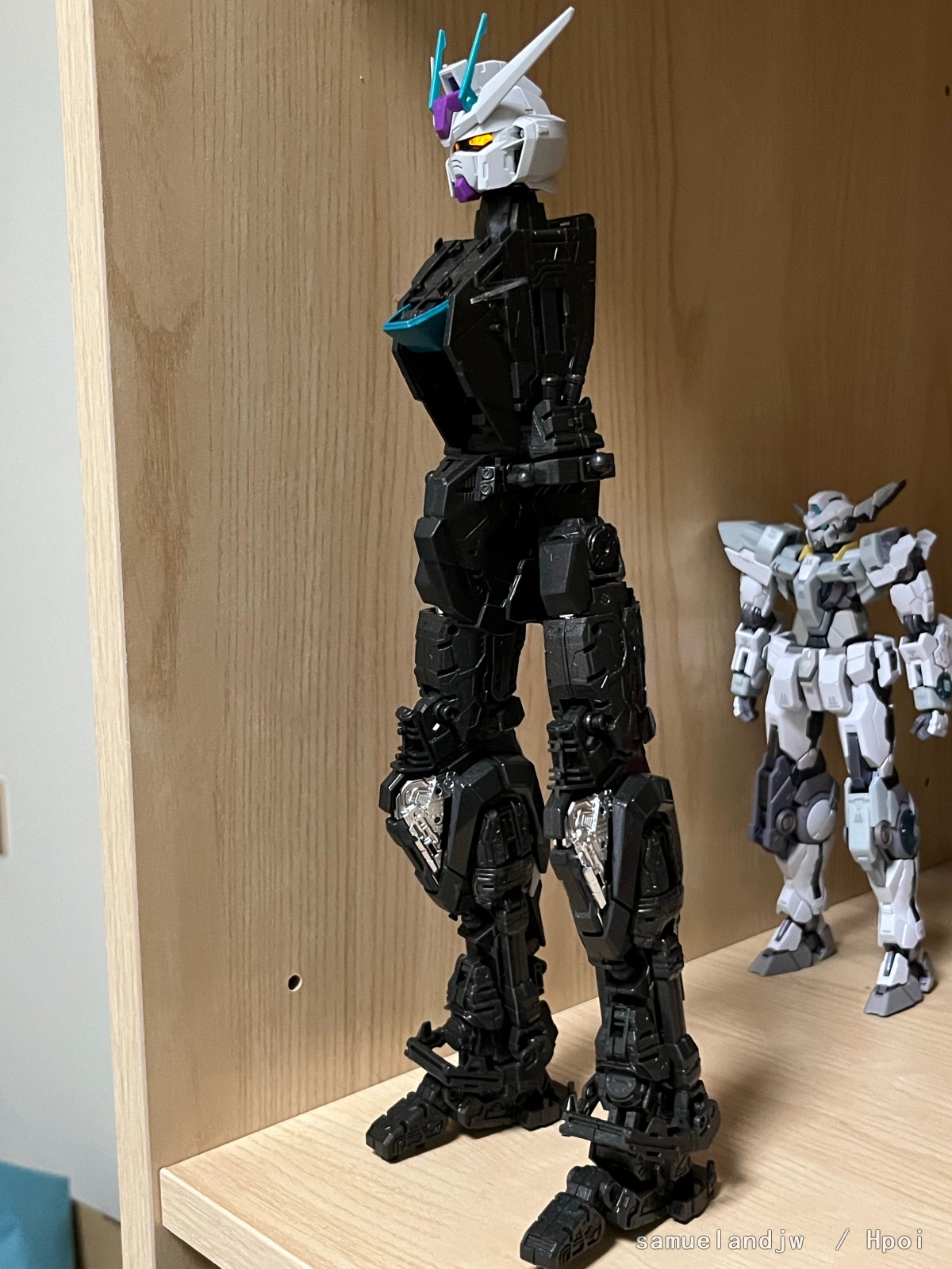 ·本体的部分板件采用赛博蓝色、赛博紫色成型色。可观赏到与此前不同的完美强袭高达配色。