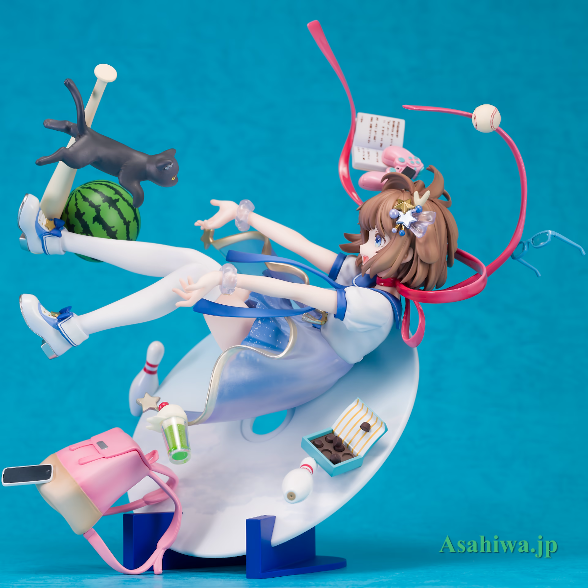 超人氣VR藝人「鹿乃」化身為比例模型登場!以「花顏巧語 Negotiation」為形象的造型製成模型。擁有動態感的動作,以及各種物品於空中飛舞的大膽佈局也是看點。圓形台座塗裝為天空圖案,表現出飄在空中的模樣。將可愛的鹿乃帶回家鑑賞吧!