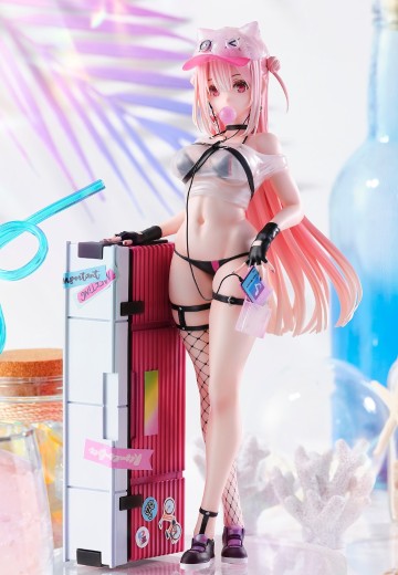 出自《少女前線》,「UKM-2000」化身為1/7比例模型登場!將繪師DSmile繪製的色彩繽紛流行的泳裝造型製成模型。大膽露出的健美身材、飄逸的粉紅色漸層長髮,以及極光色的貓耳帽等等,無論是造型還是色彩都把她的魅力表現得淋漓盡致。將她帶回家細細鑑賞吧。