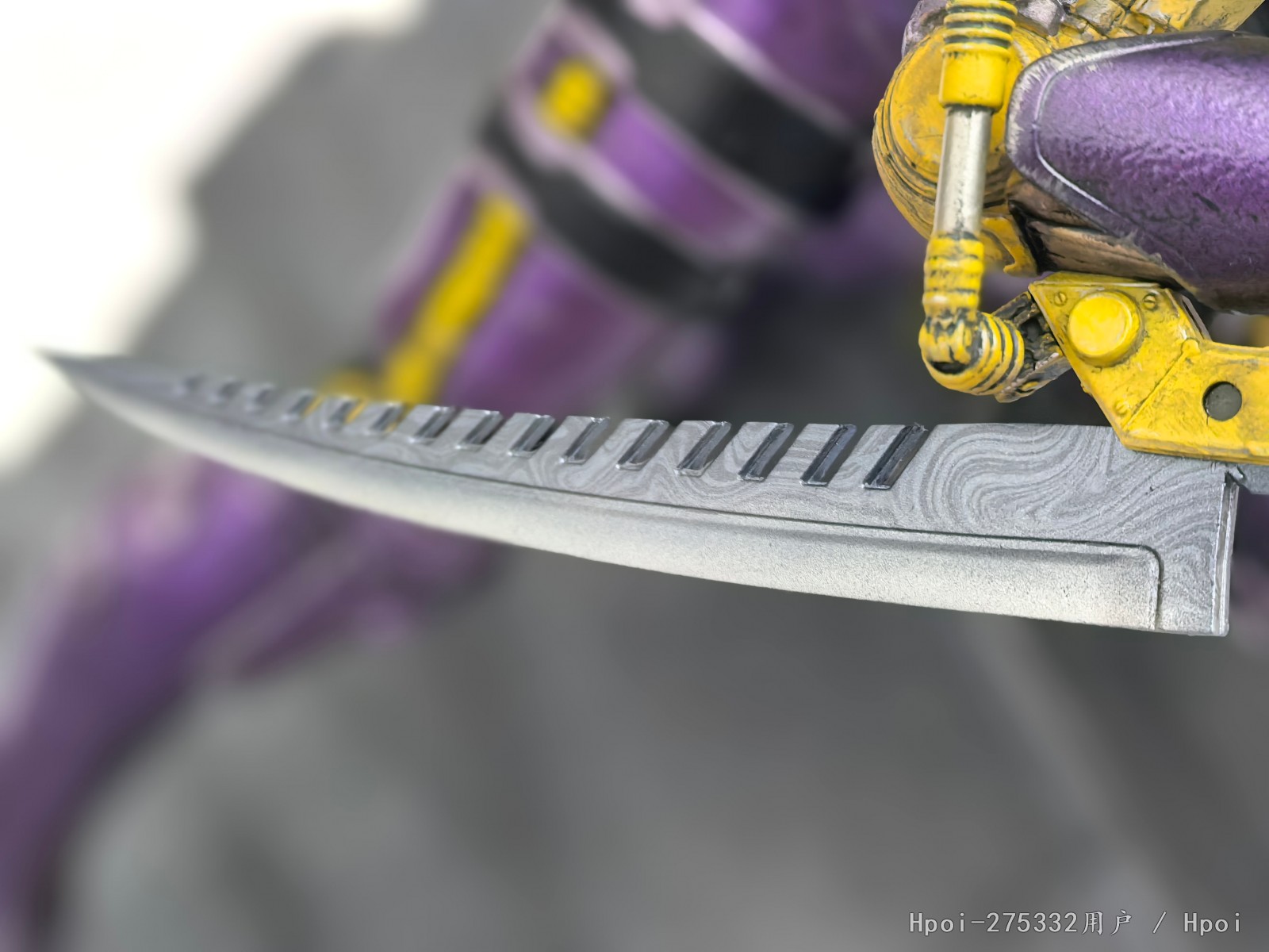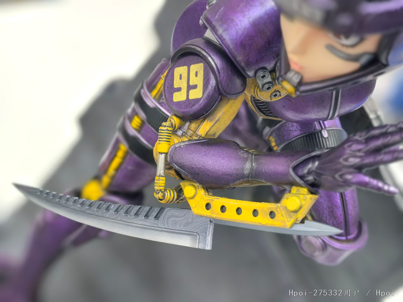 高约19英寸的加里疾驰在赛道上,急转弯时她调整重心英姿飒爽。加里身穿紫色和黄色相间的盔甲,不同金属的光泽互相辉映并衬托出她胳膊上的99号标志。她头盔紧系,左手持40公斤重的机动球向前飞弛,右臂上还配有同她并肩作战承载着不息斗志的大马士革刀。您也可以可以更换另一个左手配件,展示加里双手佩刀的姿态。