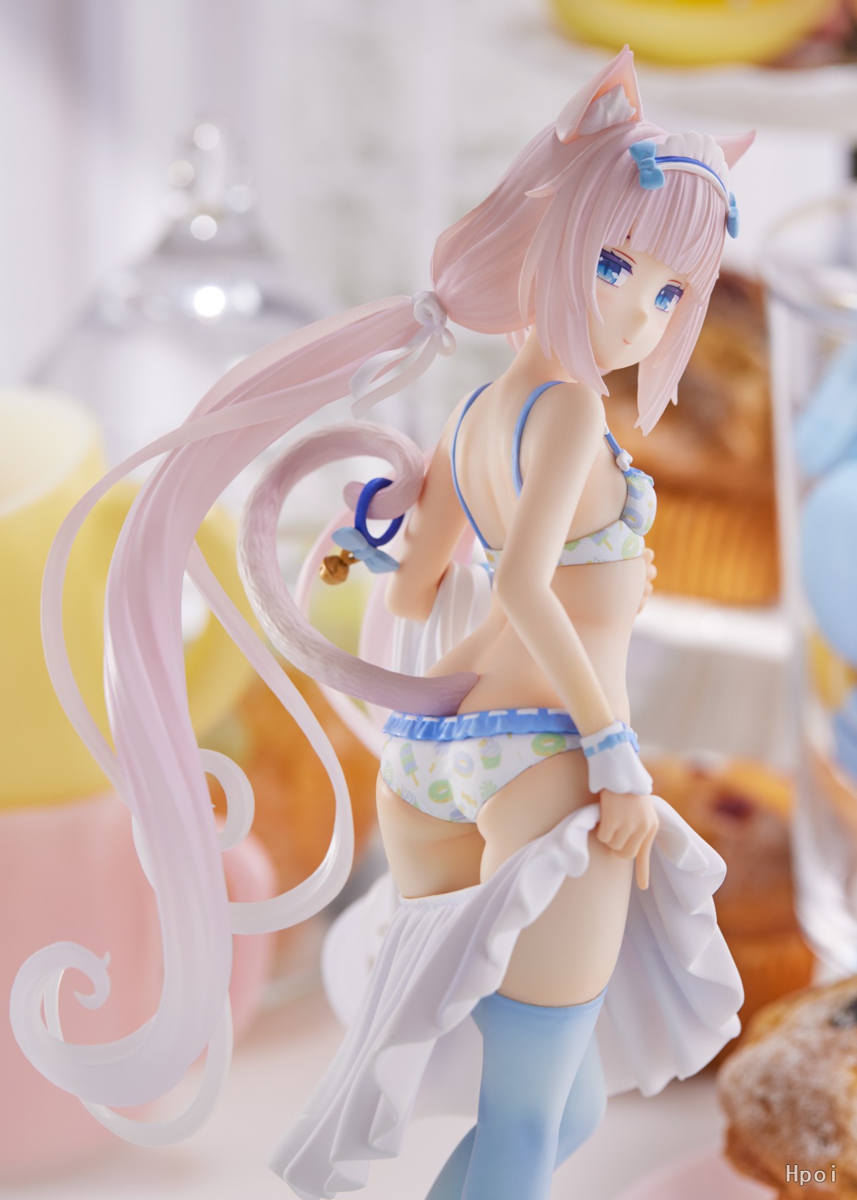 出自可愛貓咪們的美少女冒險遊戲《貓娘樂園》,換裝中的「巧克力&香草」以原創設計的服裝化身為比例模型!將原作者「Sayori」老師所創造出的細緻描繪的世界觀精細造型。粉彩甜點設計的可愛服裝,以及採用透明質感的砂糖菓子般的頭髮也是看點!不論是優美的長髮、健康柔軟的肌膚、內衣的皺褶,還是脫下的制服的表現,細節都講究製作。台座為可搭配另售的巧克力擺飾的樣式。帶回家一同鑑賞兩隻的秘密場景吧♪