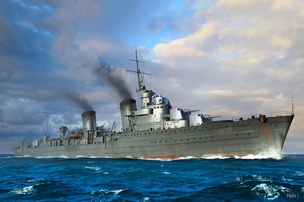 “塔什干”号驱逐领舰于1935年1月11日在意大利开始建造,1937年11月28日下水,1939年10月22日苏联接收服役。“塔什干”号的设计在当时是异常的前卫,是二战期间为数不多航速能超过40节的大型舰船之一,1942年改造之后,火力甚至提升至轻型巡洋舰级别。