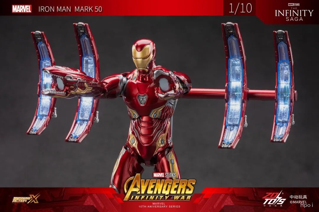 为还原该场战斗,本次钢铁侠MK50场景版配置四个纳米浮游炮,连同一个浮游炮支架,一款套装专属的公路场景地台。纳米浮游炮与浮游炮支架均采用磁吸设计,装卸方便,安装牢固,把玩体验非常优秀!纳米浮游炮涂装上经典的钢铁侠金属红配色及内构银点缀,在浮游炮支架上,每个纳米浮游炮均可实现独立发光 同时,钢铁侠MK50配件配有:纳米鲨鱼炮1对、尾翼1个、替换手型4对、火焰特效件1对供玩家进行沉浸性把玩。